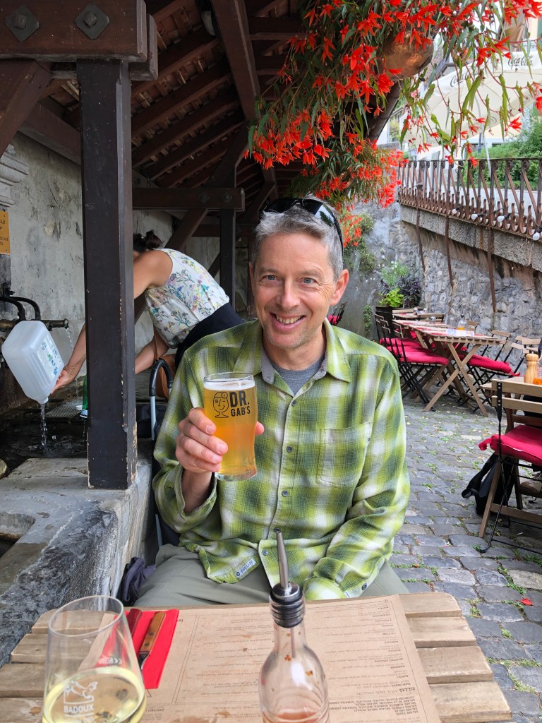 And we’re off on our touring bikes at last. After watching so many bike touring vlogs during the pandemic we’ve been itching to ride. We spent our first night at Evian-les-Bains, after a moderate climb to col de Moises followed by a long long long downhill to Lac Léman.