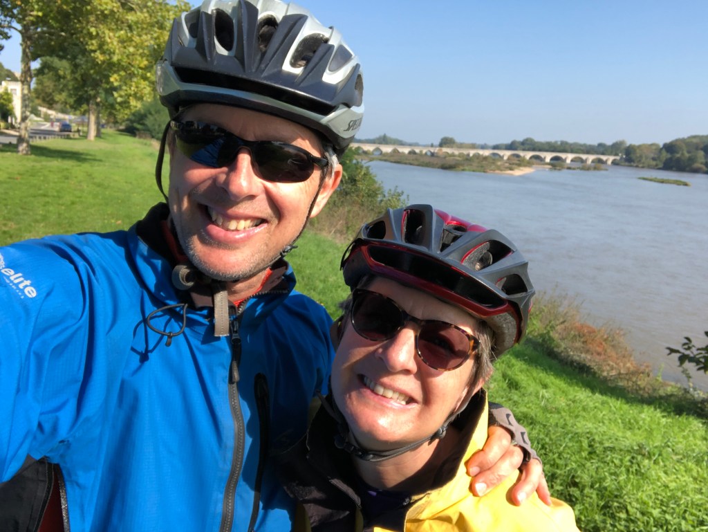 As we pedaled along a few days ago and did the math, we realized we’d been bike touring for 48 days. That’s our longest trip ever on bikes. As I write this, on a train from Tours to Dijon, it’s day 50. It’s certainly a lot of work, not the pedaling part although that can be tough at times, but the moving most nights. The unpacking (I call it the bag barf, where I simply turn my panniers upside down and let everything cascade to the floor.), the packing, and of course the travel planning done exclusively by Rich. Each day he checks terrain and weather and towns that look nice for a stay, one night or two, the feeding of two hungry cyclists – thank goodness for hotel breakfasts – whoops, watch out for Sunday, everything closes about noon, be ready for that!