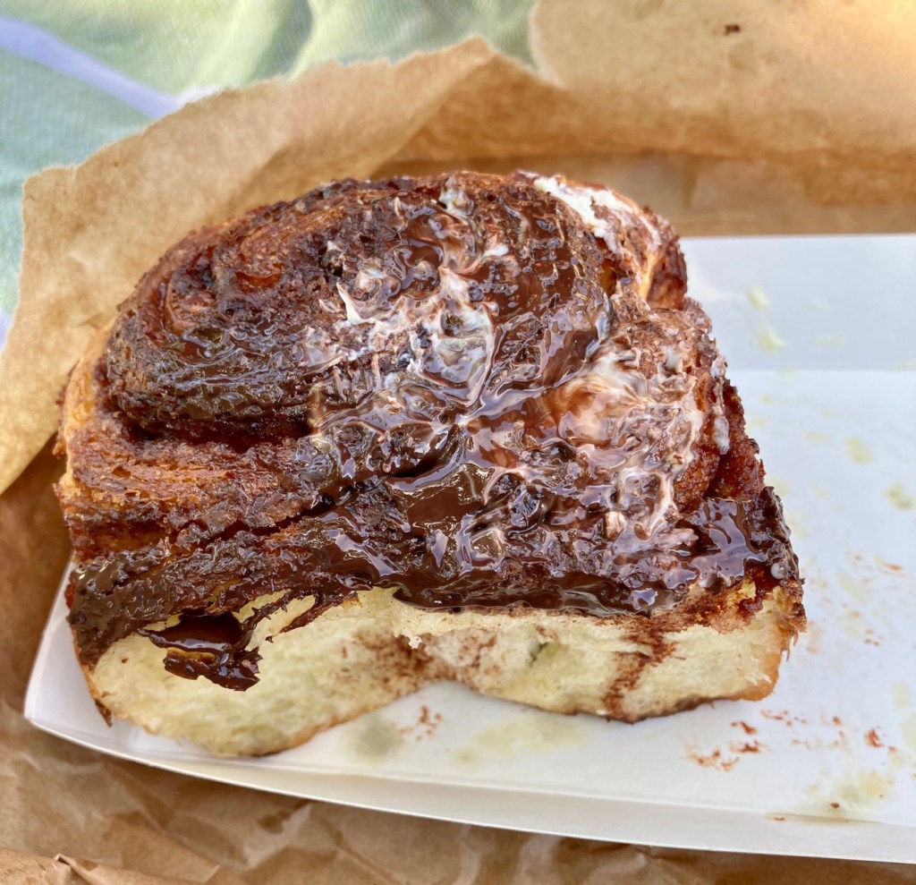 Pastry breaks aren’t always on cycling days. On a rest day in Dresden we actually sat at a cafe for coffee, tea, and Black Forest cake.All pastry breaks are eagerly anticipated, and Rich waits patiently for me to stop snapping photos. Train pastry break. With the 9€ monthly train passes in Germany this summer we happily took train hops.Cherry Streusel.This fantastic bakery on Bornholm Island was a hit. Svaneke Brød in Svaneke.A cardamom bun and a heavenly chocolate roll.Chocolate roll for the win! And this seeded load of sourdough which we were still eating two days later. One more photo of the amazing chocolate roll.