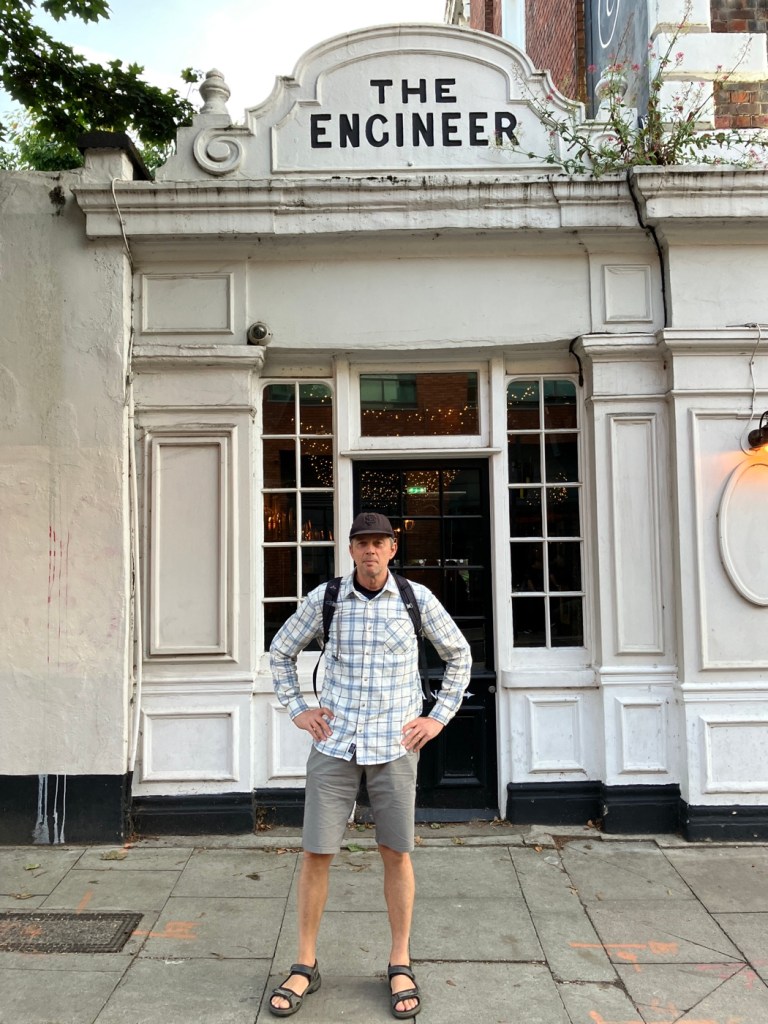 The irony of our ride was that Central London was still easy peasy due to light traffic, great bikeways, and smooth pavement. But as soon as we left the core and headed southwest into SW3, 11, and 18, the roads got a lot busier and the bike accommodation was less. The reimagined cores of global cities are now often ahead of their more suburban car oriented neighbors. Regardless, we made it to Wimbledon just fine, and were pleased to have a long 13-hour travel day over! It was then an easy walk to a great pub (The Alexandra) for dinner and some libations. We liked that the Alexandra had a sports side, non sports area, and upstairs loft, so you could choose your setting based on your mood. (Or passion for Arsenal or Liverpool!)