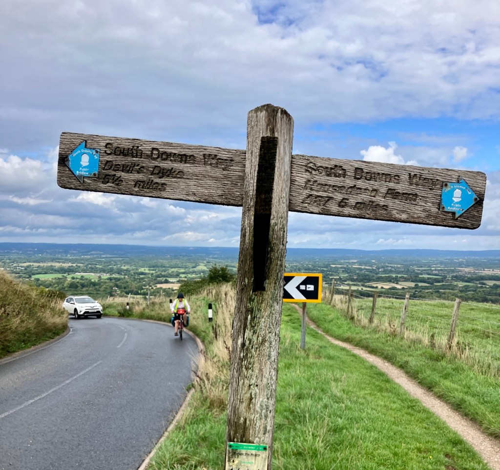 There is no single “route” from London to Brighton and no National cycle network route that gets you there directly unless you divert fairly far east or west. You can head west via the NCR4 and 223 (rail trail-flat!) or east via the Avenue Verte, which is a good route to Paris via the Newhaven-Dieppe DFDS Ferry. We still went fairly directly and used Komoot, and a route on the Cycle.Travel site. I then tweaked each daily route to try to avoid busier roads, take in some sights, and hit sections of quiet lanes tagged by Komoot users. The big advantage of cycle touring on a leisurely schedule is that it is always easier to lengthen a journey and day as desired, but not the opposite. If you’re more time pressed, then you often have fewer choices and can be forced to take busier roads and ride through the worst of the weather.