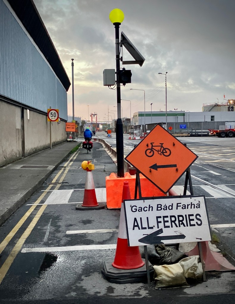 Luckily the rain managed to hold off while we rode to the massive Dublin port and terminal area, and the Irish Sea was thankfully calmer than predicted. We also decided to try out Irish Ferries instead of Stena Line, but we’ll fill you in on all the nuances of our year of ferry, train and bike travel in an upcoming post. Stay tuned.