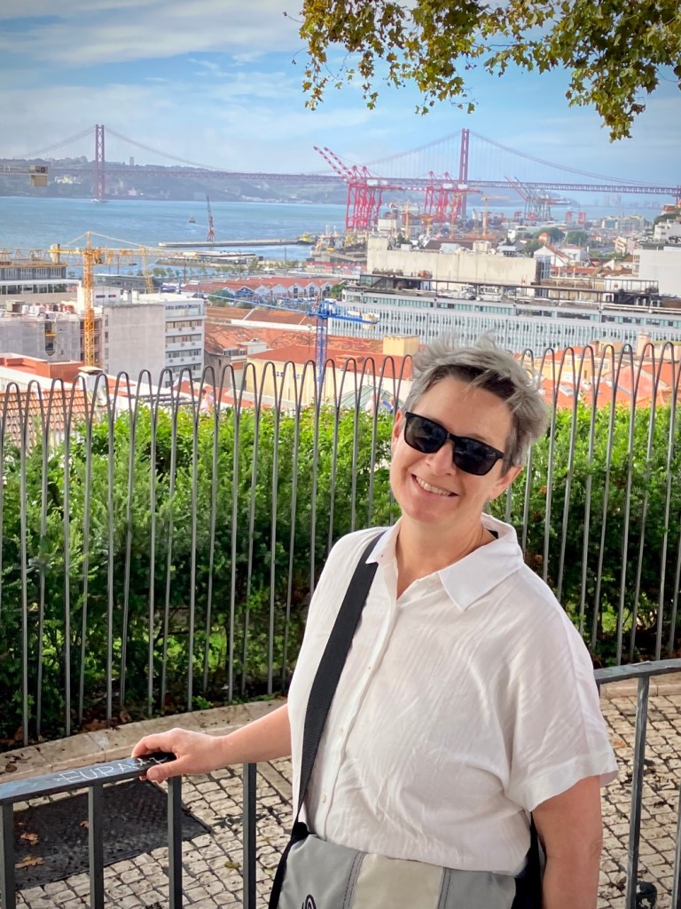 Cheryl’s negative test smile with the Ponte 25 de Abril Bridge…always a double take for our beloved Golden Gate
