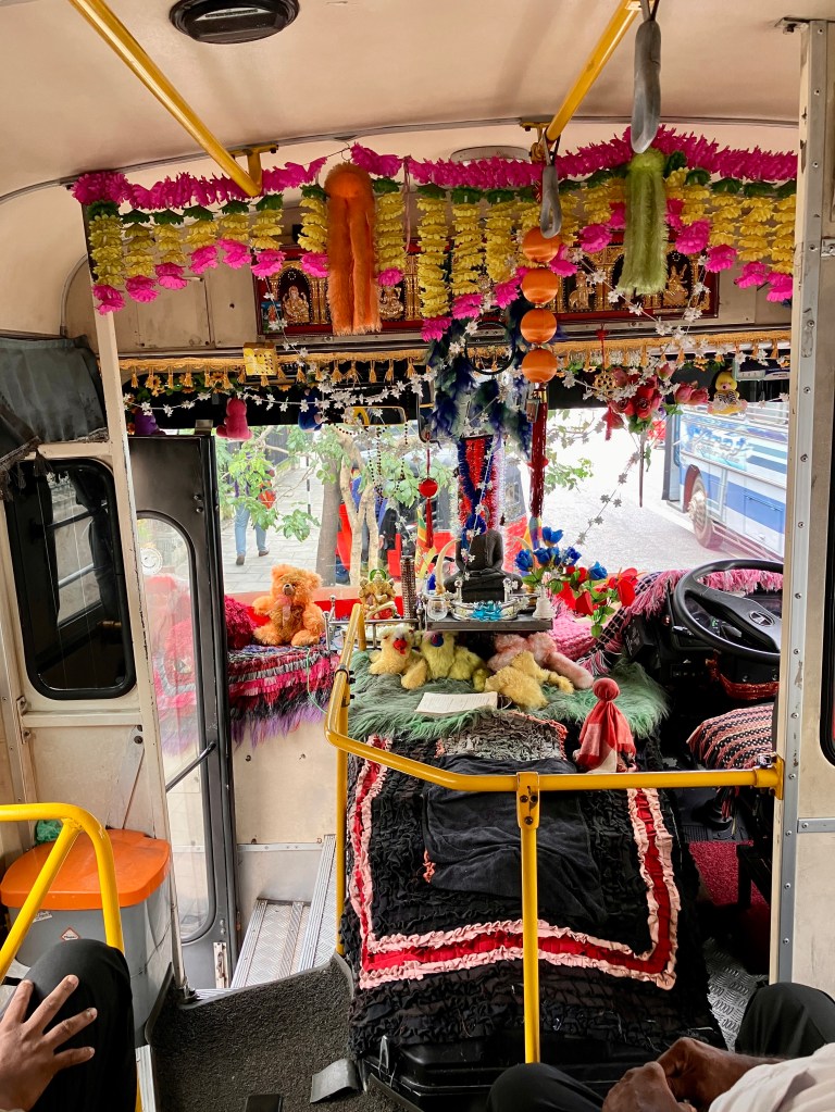 Another thing to file under “Wasn’t expecting that!” The buses of Sri Lanka are eye catching. Very eye catching. Day and night they burst with color and bright decorations and lights.