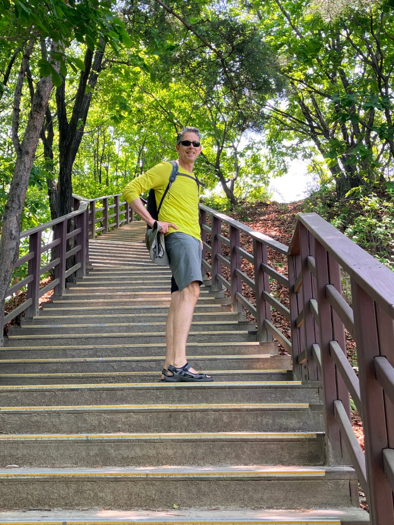 And then down. This hike day, a section of the Seoul Trail, had about 2,000 steps.