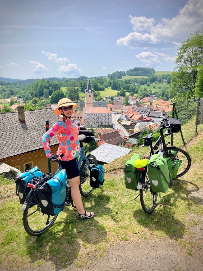 After 10 days of breaking in our bikes, too much headwind, and a busier Danube bike touring scene, it was time for something hillier and wilder. So it was with double excitement we approached the hills and mountains separating Bavaria and Czechia. First of all, I love to cross land borders versus flying into a place. And, we both prefer the challenge of some hills in our bike tours. Well, maybe not this many hills…