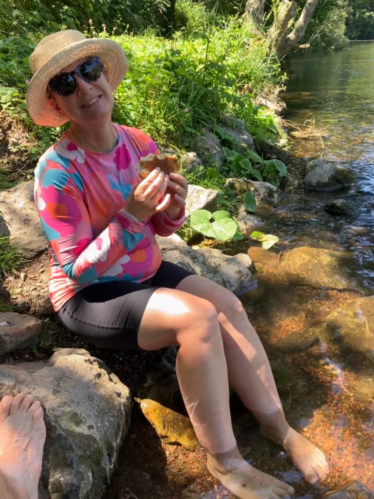 So we headed out the next morning and I did sort of notice that the spot on my leg had continued to grow and was now over 4” x3”…hmmm? We made it to our next Guesthouse in Hasenfeld and decided, despite the heat; we’d walk down to try to see the lake. As we returned, we both realized my leg was brighter, redder, and the spot had a bullseye center. Yup, I needed to get this looked at ASAP, so asked the innkeeper about a taxi to a hospital about 30 minutes away. When I pointed to the red spot on my leg; she exclaimed in horror “Scheiste!” or some hybrid of shock in her German-Polish vernacular.