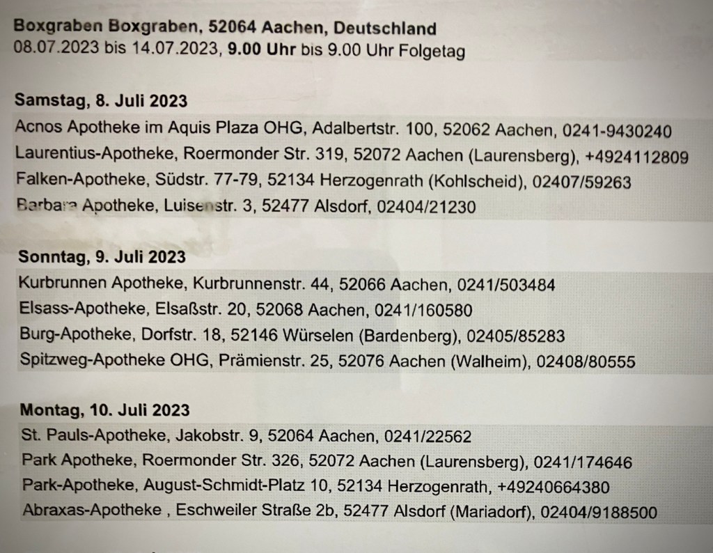 Her panic did not help. It was now Friday evening, but she was as able to get us a taxi to the urgent care clinic of the local hospital, and I was seen in less than an hour. The doctor spoke English and was pretty sure it was an infected bug bite (but not a tick) and prescribed an antibiotic course and ibuprofen. He recommended I get it looked at again in the bigger city of Aachen; where we planned to cycle the next day.