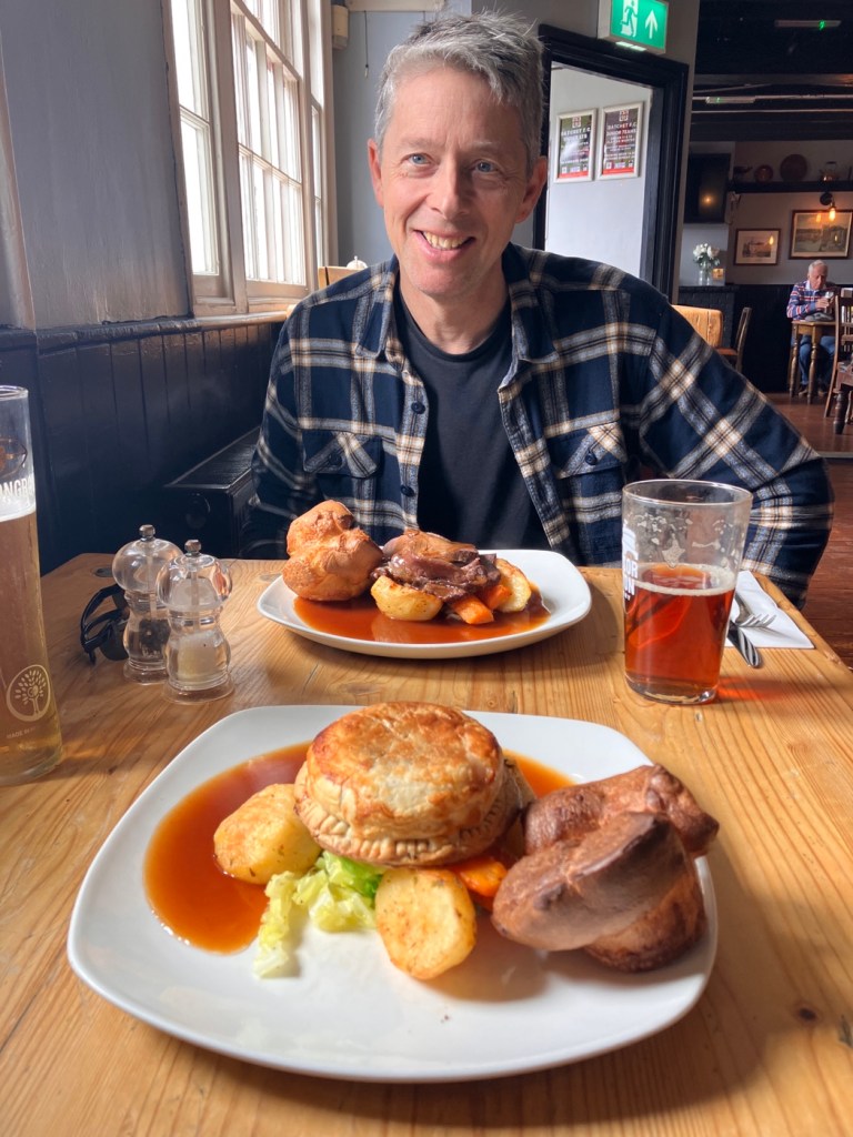 with Yorkshire pudding at our local pub is great. (Cheryl had a veggie Wellington.)