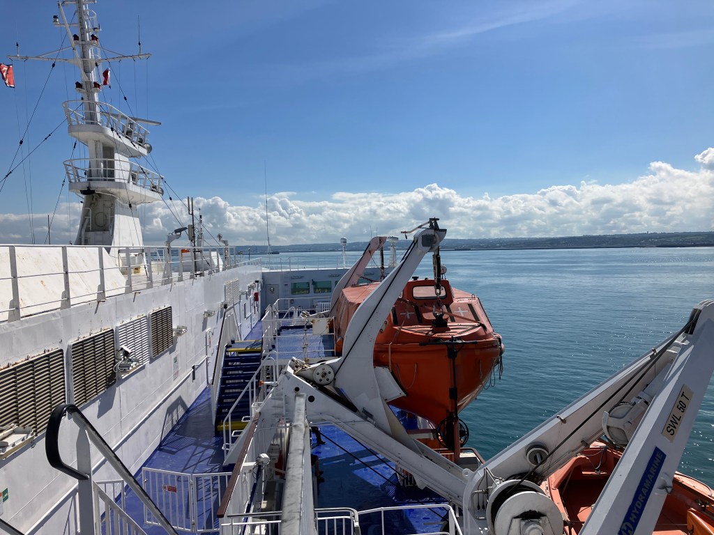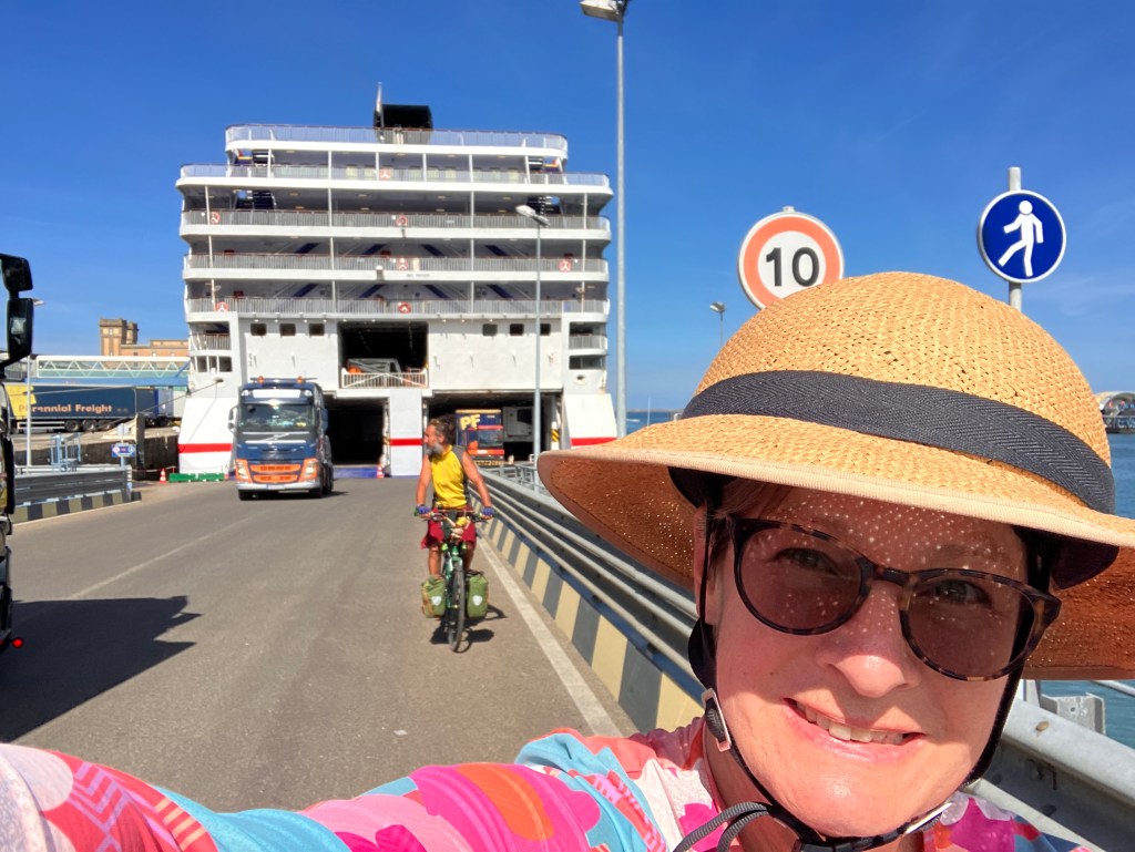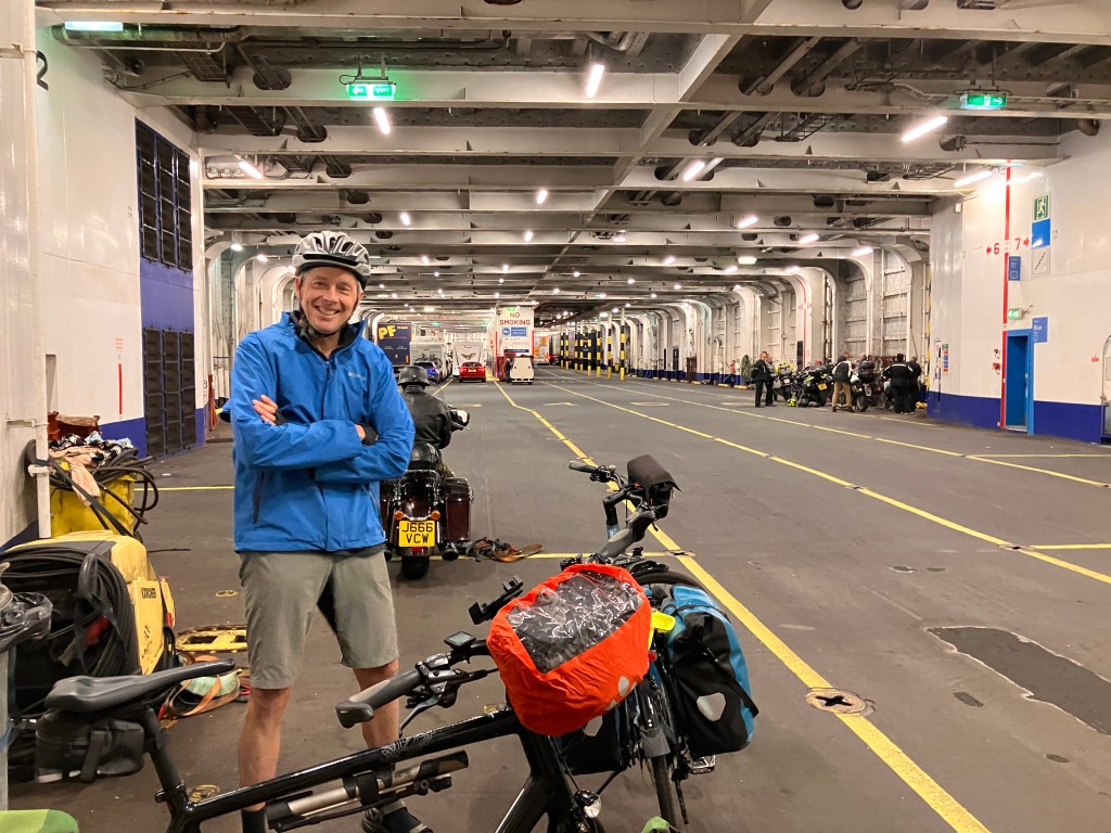 For the first leg of our trip our friends in Tenby generously drove us and our bikes to Fishguard, Wales, for our 24 hour fun journey to France.