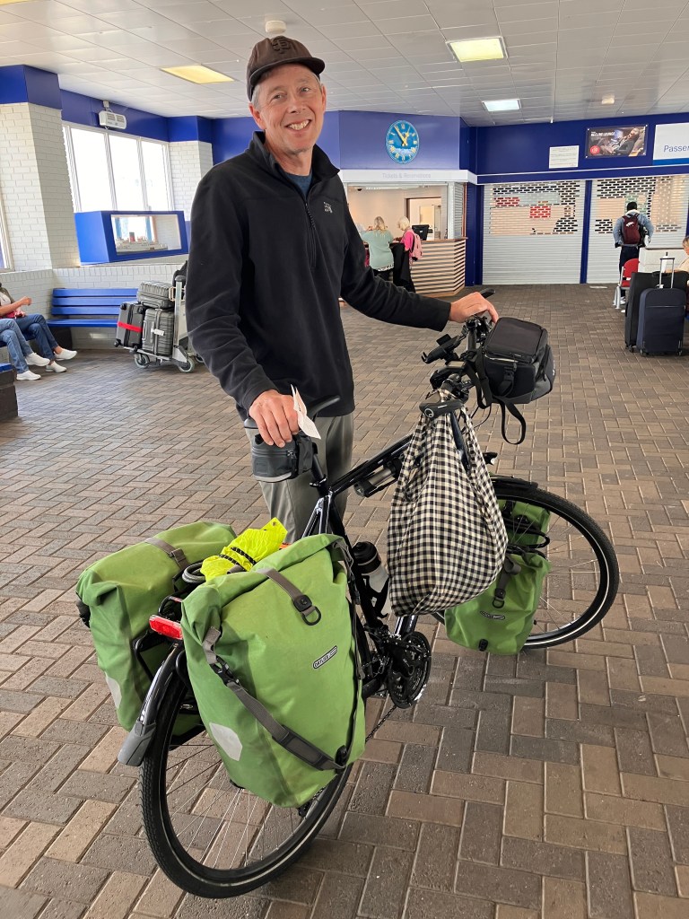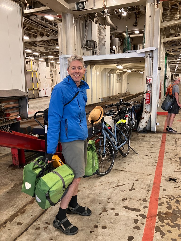 I don’t take pictures while disembarking, I’m too busy trying to keep up with the flow and not skid on the steel plates of the ramp. It looks more dodgy than it is, but I prefer both hands on my handlebars for this part of the trip.