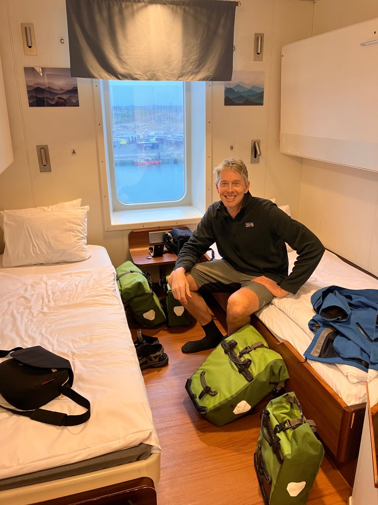 Traveling with bikes on the Stena Line or Brittany Ferries is becoming our regular way of getting to and from the UK from the continent or Ireland. This was our 12th ferry trip, seventh with bikes, since going nomadic just over two years ago. Eight have been long crossings, and four were shorter hops, Germany to Sweden, Denmark, etc. On this trip our Stena lines reward number got a work out as we bought so many meals – not inexpensive – but now we have points for future discounts. As I mentioned above, you could certainly make this journey less expensive by getting a standard cabin, and either bringing your own picnic meals or opting for a non buffet dinner and breakfast. The premium cabins vary ship to ship, on one from Hook of Holland to Harwich we had a full sized bed in the cabin and no upper bunks. Both were very comfortable and we slept well.