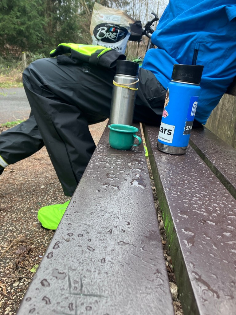 Rain trousers not only keep you dry, but make sitting down anywhere super easy. Wet bench? Who cares.