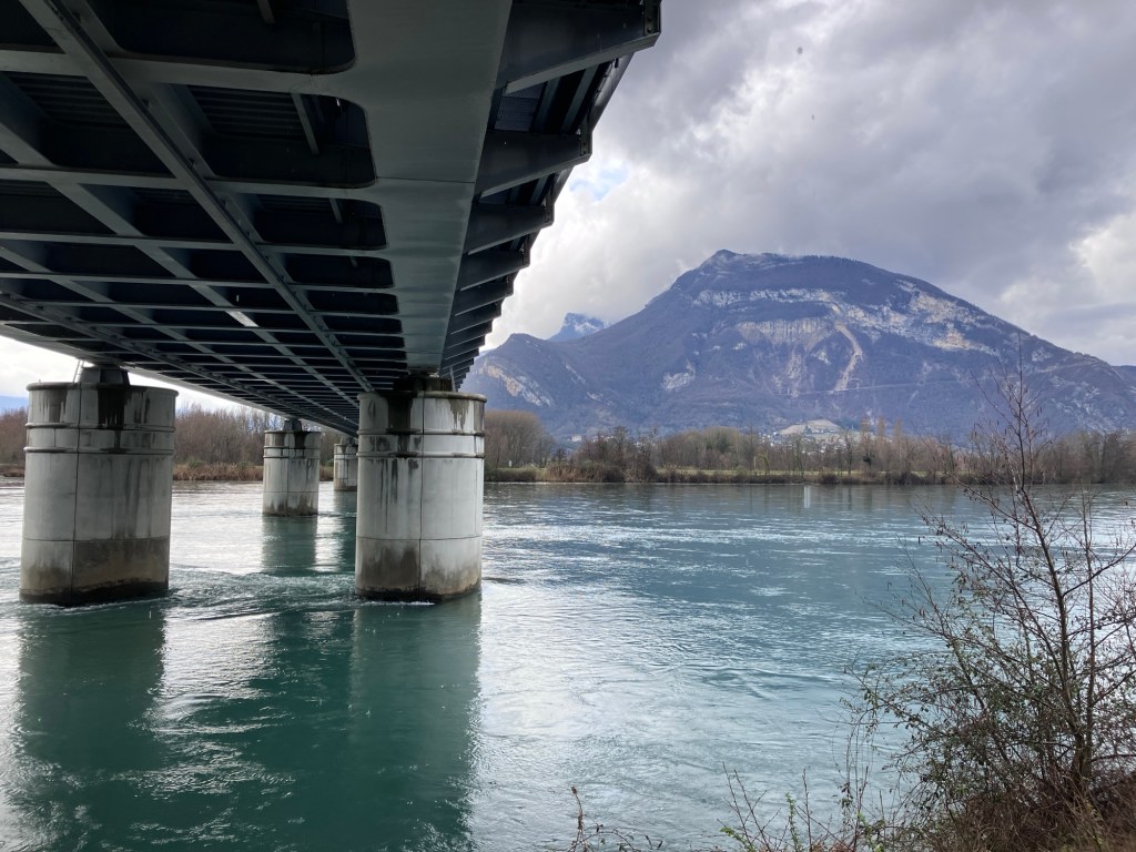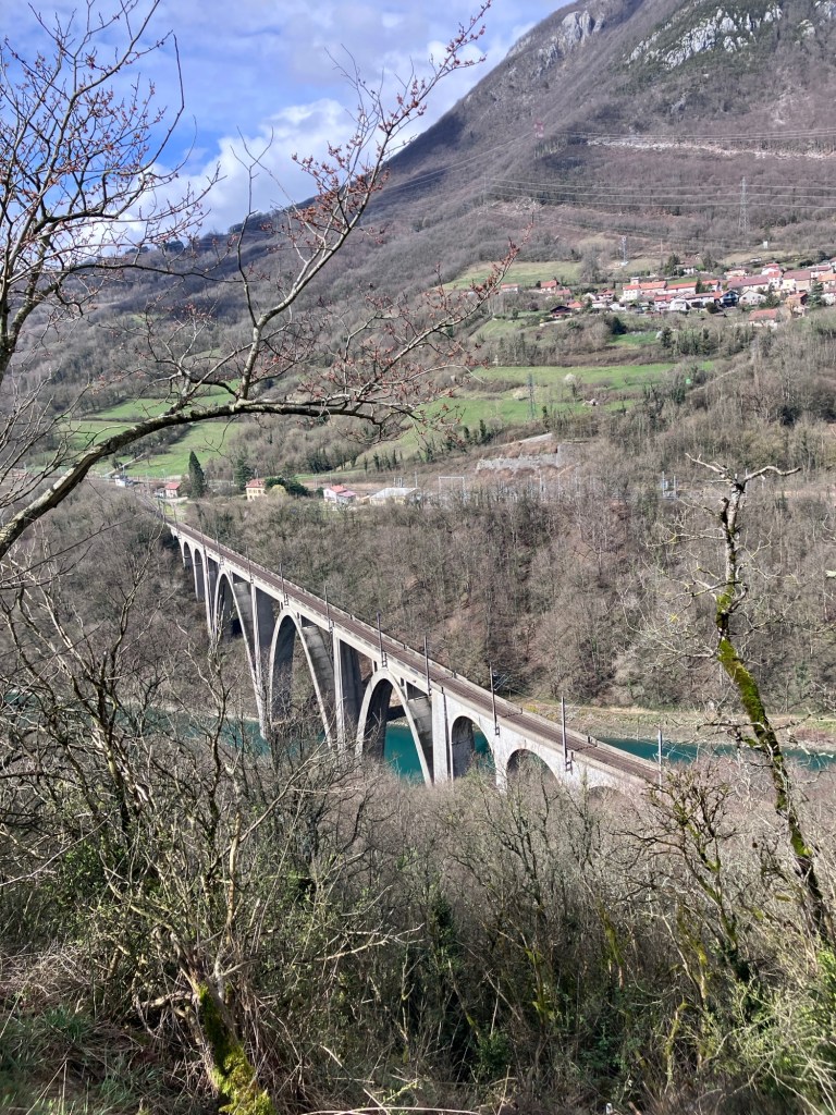 With bare trees you get a better view, like of this rail bridge over the shockingly blue Rhône River.