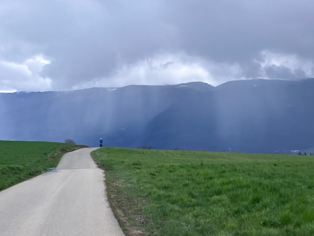 That’s a little tiny Rich, headed into a rain and hail storm along the Via Rhôna.