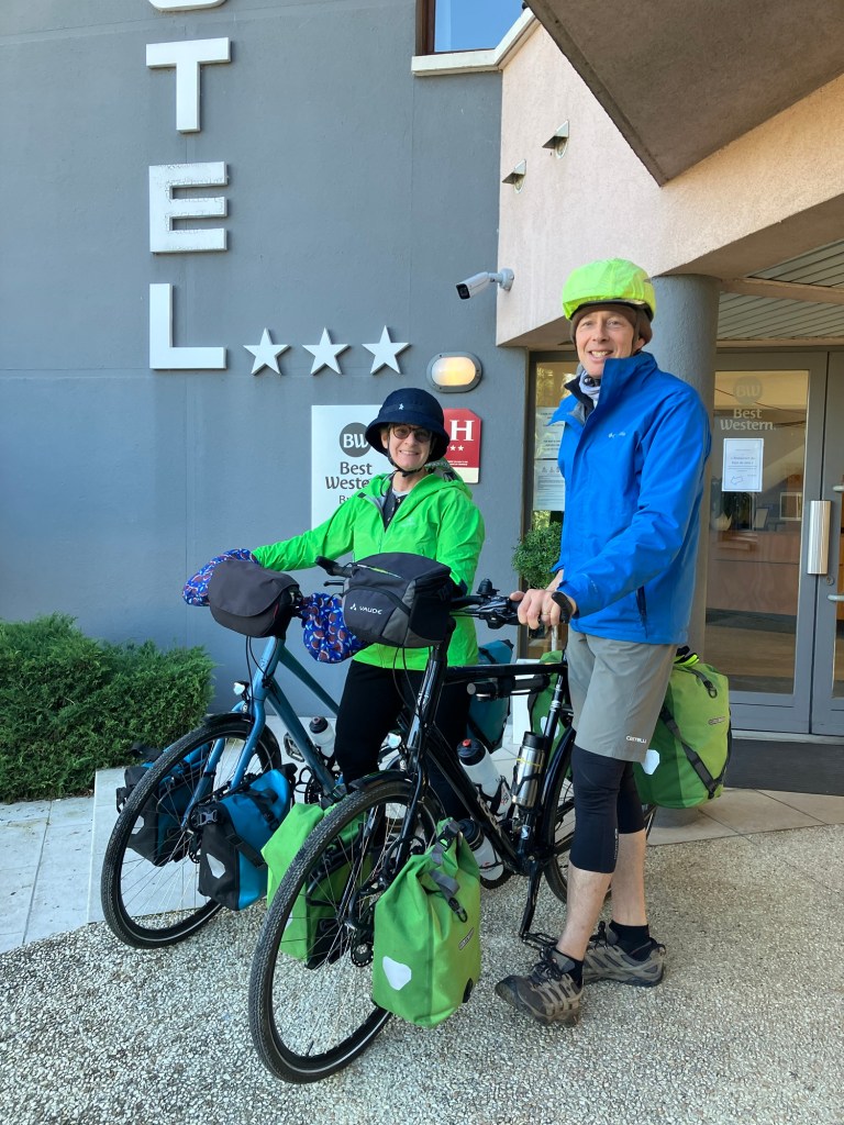 The biggest impact of starting a bike tour is how pleasantly tired we are at the end of the day. Oh the sleeping is fantastic. Such deep sleep. Hiking in Wales last summer we met a guy who was powering up a hill with a loaded backpack on. Are you training for something, I asked him? No, just tiring myself out so I’ll sleep, he said. That’s us this week. So tired I can’t find many words for this post. More later from the Via Rhôna south of Lyon.