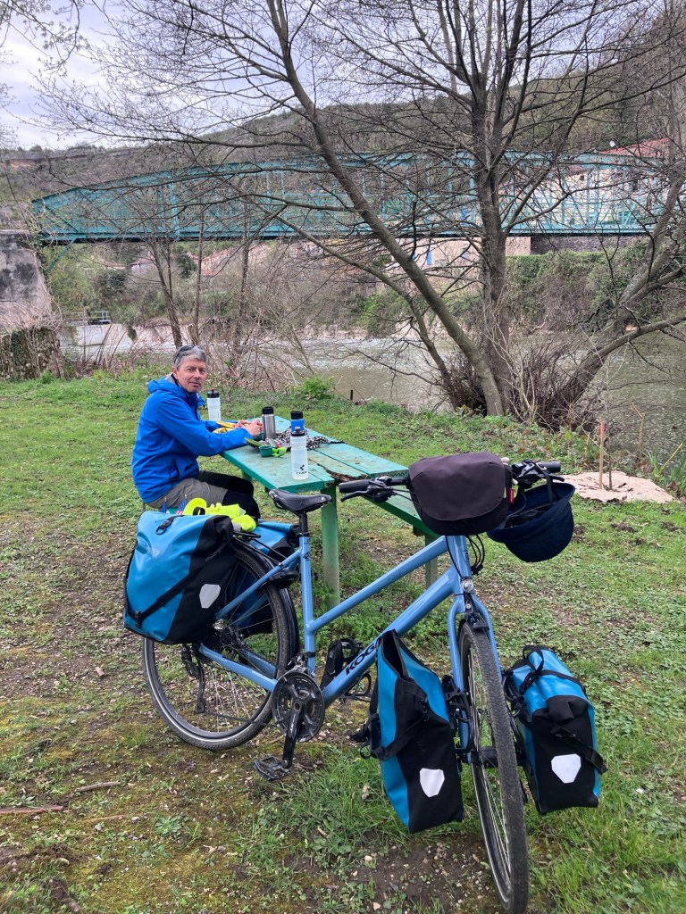 A frequent problem we have is the lack of benches along cycling routes. And benches in the shade are even rarer. We’ve learned to head into towns where you can usually find a bench by the church, or in a shady old town street.