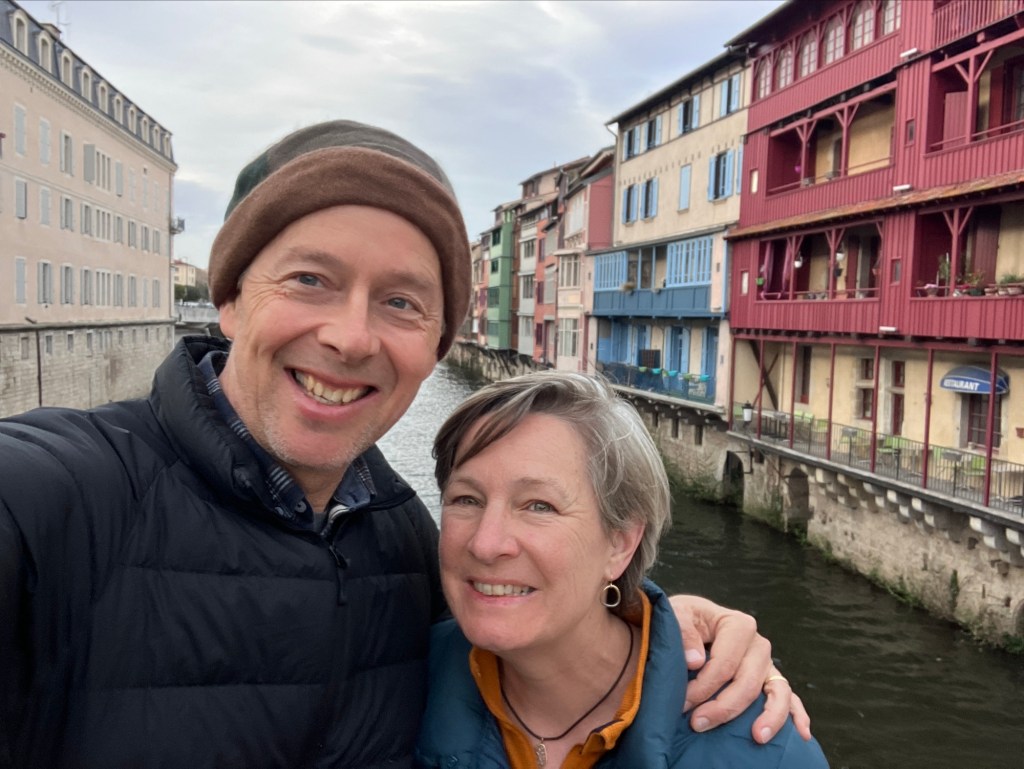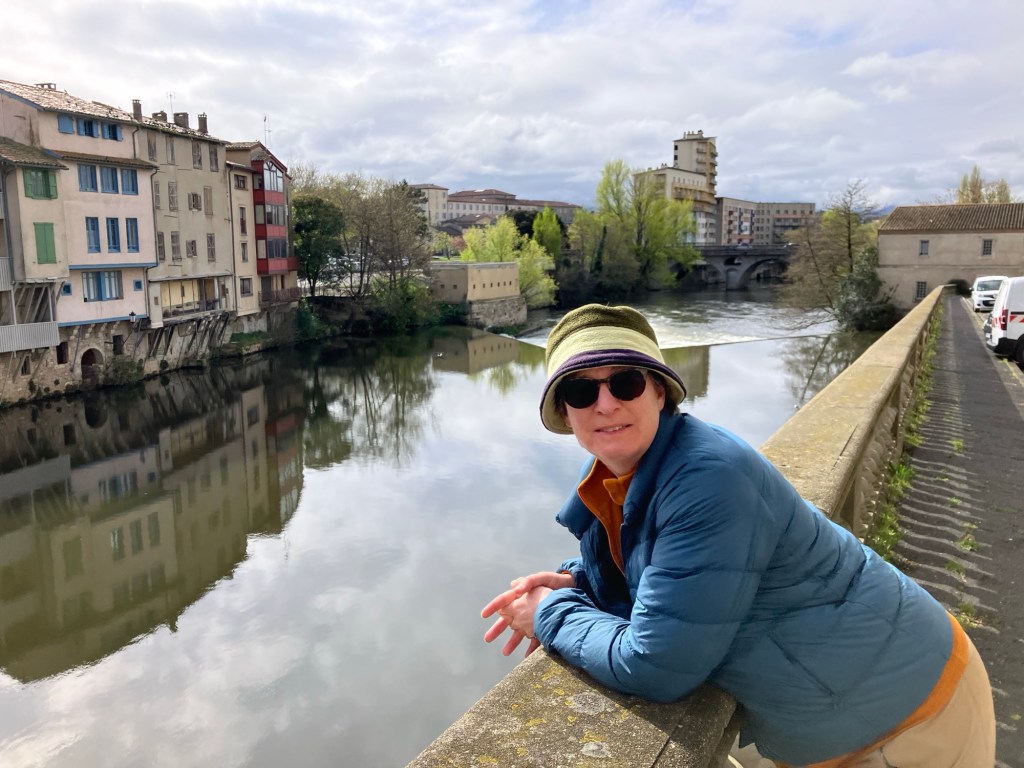 Castres! Where we would spend two nights, still trying to get over our chesty coughing colds and hoping for the wind to calm down. That’s l’Agout River. So many rivers.