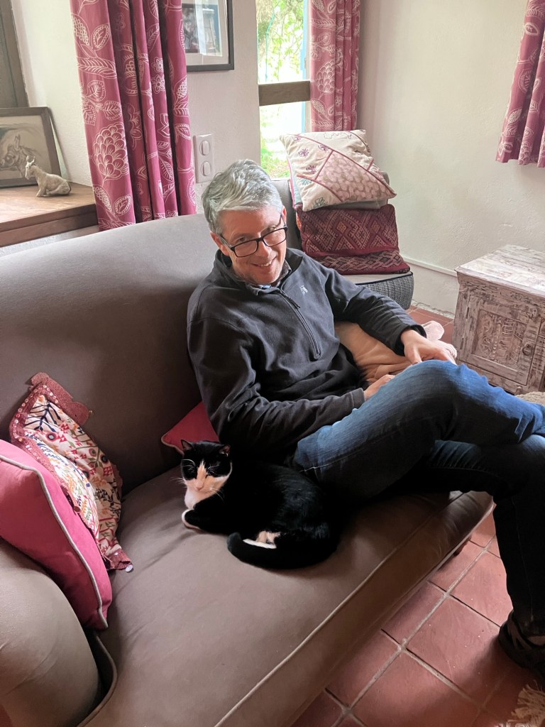 Our French countryside week included two cats and two donkeys to care for. The donkeys were easy since they were grazing and only needed a daily check in and carrot. One cat we barely saw as she was super shy, but the other, a three legged charmer who couldn’t use the cat flap and never passed up a lap sitting opportunity, was a constant source of amusement.