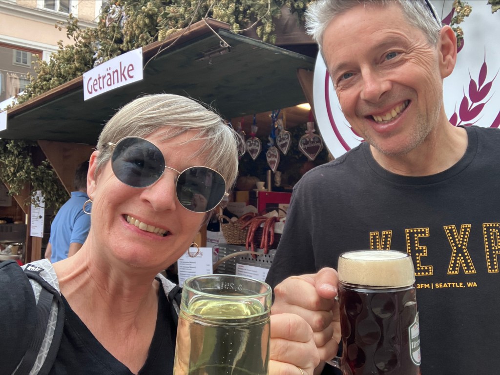 We’ve been traveling long enough now, entering our fourth year of nomadic life, that we have a good sense of when we need firm plans and when we can wing it. We planned on Salzburg. Always a good idea in popular cities to book ahead. Rich found a new hotel outside of old town that is one of the increasing number of hotels with no reception or staff. The Numa Salzburg Vogelweider. All automated check in and check out. Worked well. We could walk to old town in 20 minutes, it had a bike storage room, kitchenette, and grocery store across the street. As we looked at restaurants recommended by a friend’s Aunt (thanks Gisela and Tante Hannah) we saw that slightly ominous Google maps message that every traveler fears: Hours may vary due to St. Rupert’s Day.