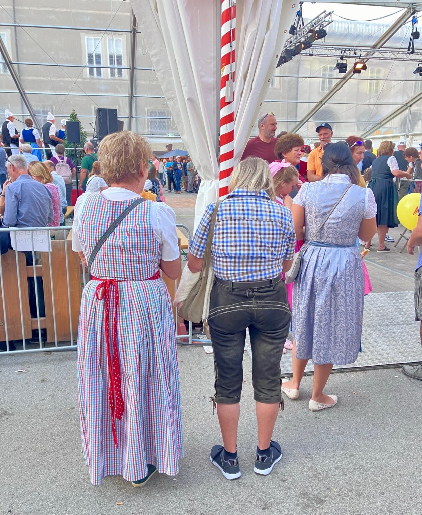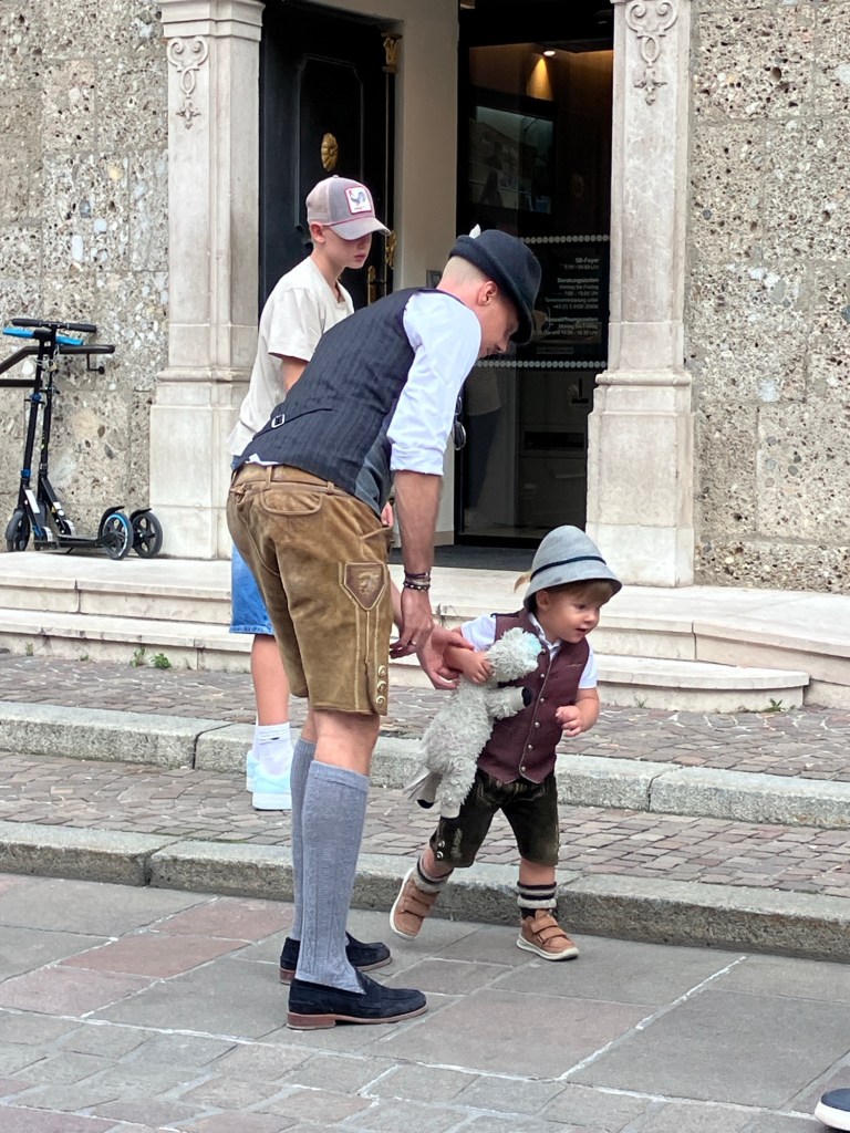 Traditional dress, or Tracht, is more popular now in Austria and Bavaria than it was ten or so years ago. I love this. But, I do admit that I have a little squeamishness about the clear gender lines of the outfits. What if you as a woman don’t particularly like dresses (Dirndls)? Why, I asked Rich, don’t ladies wear lederhosen? Well the ladies are way ahead of me and they are wearing lederhosen.