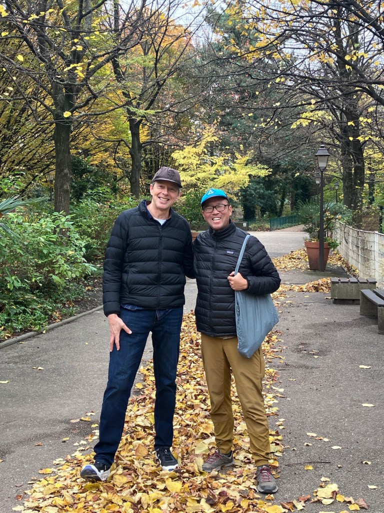 Paris is so walkable. Nancy demonstrates that even the weather can’t stop her. Rich and Dan on the Coulée verte René-Dumont.