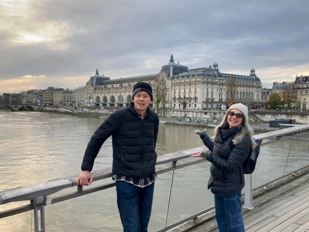 Late November and early December seemed to be a great time to visit Paris. Holiday cheer was getting going, but Christmas crowds hadn’t fully arrived yet. The weather was mostly grey but the sunny days we got felt even more special. The one day of snow was scenic but melted quickly. And having friends visit, first Dan and then Nancy, was just wonderful. And we got more photos of the two us than we usually take. As Nancy joked, it’s proof Rich does have a right arm – that’s his selfie taking arm usually not seen in our photos together. A big thank you to Nancy for the great photos.