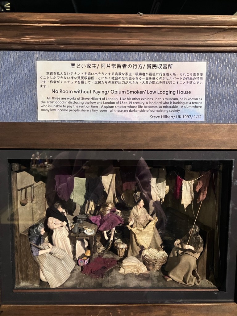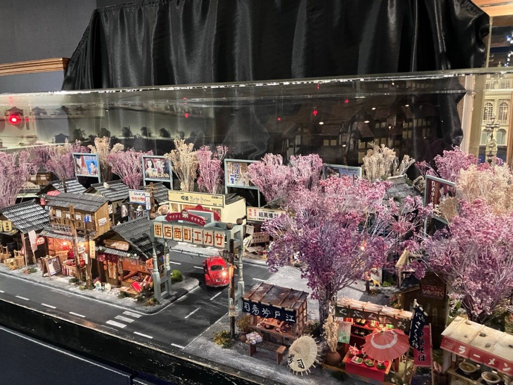 Walking to our museum destination and admiring the neatly parked rows of scooters.In the basement of an office tower is one of those quirky specialist museums. Yes, as billed – miniatures. Tin toys. Amazingly detailed miniature houses. I won’t call them dollhouses. Each diorama or vignette had a creator credited, and often a small backstory.This pre-war typical Japanese street was just infused with nostalgia and sadness for what was destroyed and will never be again.Astonishing miniature Hall Of Mirrors, Versailles. You can see my reflection at the end of the hall.