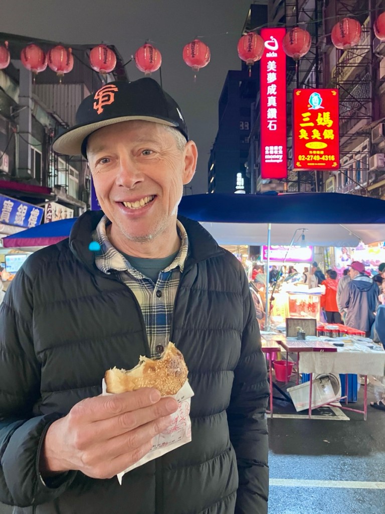 Back to the hotel by metro and we showered and chilled until evening when we headed out with two things to accomplish: find Rich’s favorite shirt at the Wufenpu Shopping District, and eat pork buns at Renhoe Night Market. If successful it will be the third time he has bought this shirt in Taipei. The market is a ten by ten grid of small streets all filled with shops selling clothing, shoes, and handbags. Rich is looking for one specific shop that for two years in a row had a shirt that he loves for Asia travel. The first one, purchased in 2023, was destroyed by sweat and sunblock and retired in Sri Lanka. The second was purchased in 2024 and is in France. It failed to make the trip back to the US for this onward hot trip to Indonesia. Rich had a good idea of where the shop is (and yes, this time we dropped a pin on Google maps), but it takes some searching, and the shops do change a lot.