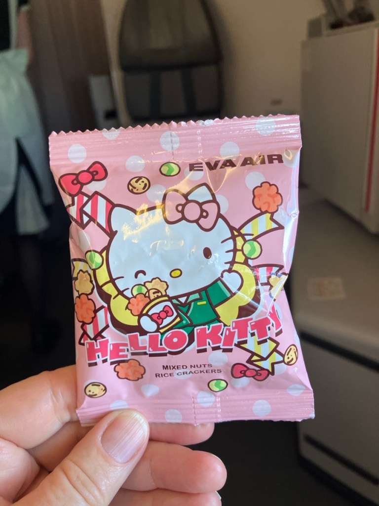 Early next morning at the metro station to get to the airport.Very thrilled to see that our Eva air flight is Hello Kitty branded.Look at that plane! So cute.Hello Kitty snacks.And a cheers with Hello Kitty cups.
