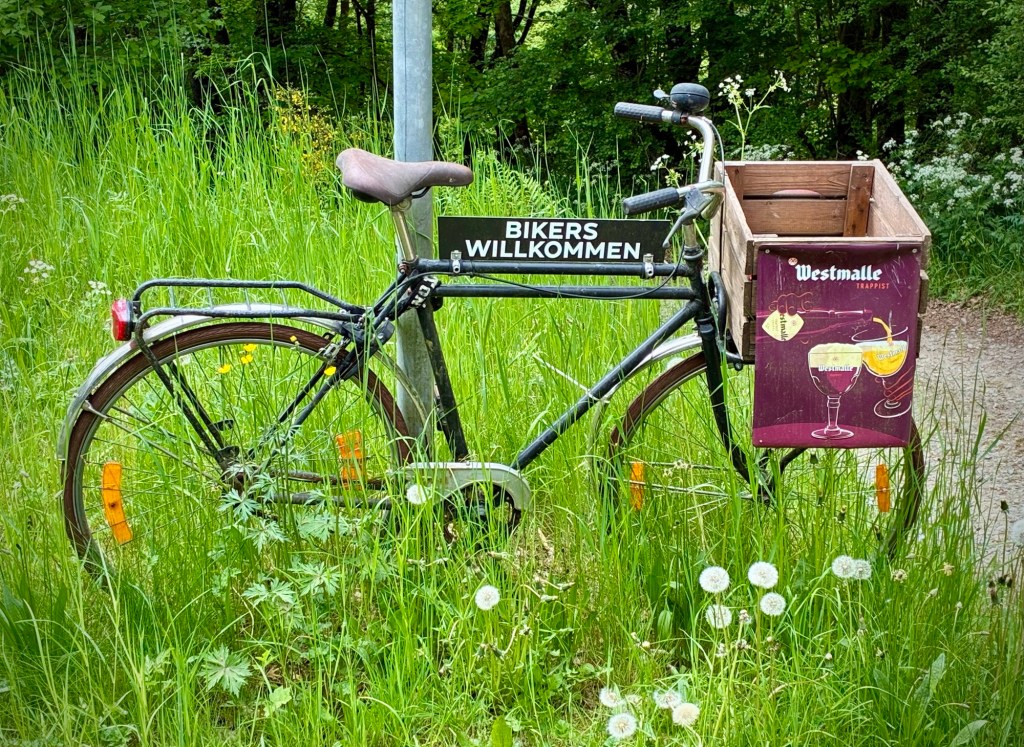 This tank is dedicated to the U.S. 10th Armored unit who were the first to defend Bastogne in the Battle of the Bulge. They were soon joined by the famous 101st Airborne Division who have their own museum in Bastogne. About 50m from here is a monument to the nurses in the battle.The beautiful and dramatically located Mardasson Memorial on the edge of Bastogne.A strategic location to defend.The RAVeL Line no 163 runs from Bastogne to Gouvy just along the Luxembourg border and traces a critical front line of the Battle of the ArdennesAnd more cow curiosity; what are these crazy people doing on top of our ridge?!And this cute little guy (gal?).And did we mention it’s Spargle (white asparagus) season!!Our nice bike friendly guest house in Sankt Vith. Nice new rooms and a self serve bar filled with Belgian Beers. (Of course.)