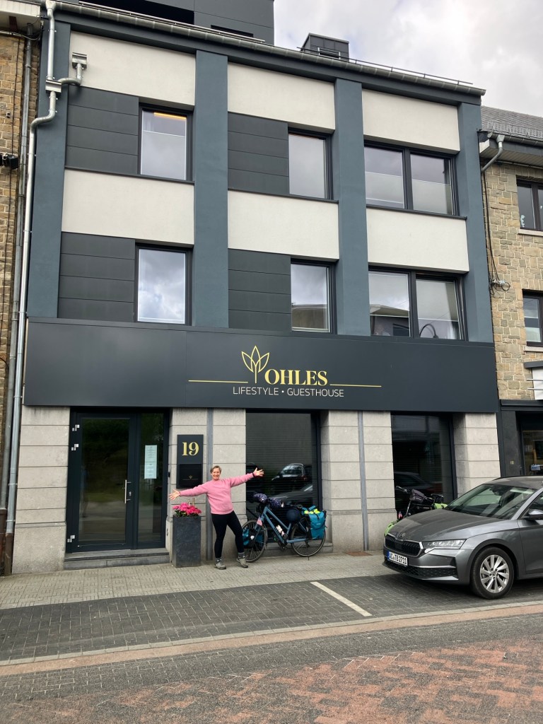 So luckily after 3 days of riding, my back tire kept it together and we made it to Bastogne and a nice, well equipped bike shop that had a replacement tire. Not my dream Schwalbe tire, but actually a wider 700×50 Schwalbe mid range tire. This is as wide a tire as our Kogas will accommodate, and it certainly does have a nice supple ride now. But lesson learned, right? And Cheryl keeps reminding me that she said I should have gotten the new tire in Paris… and Cheryl is always right!