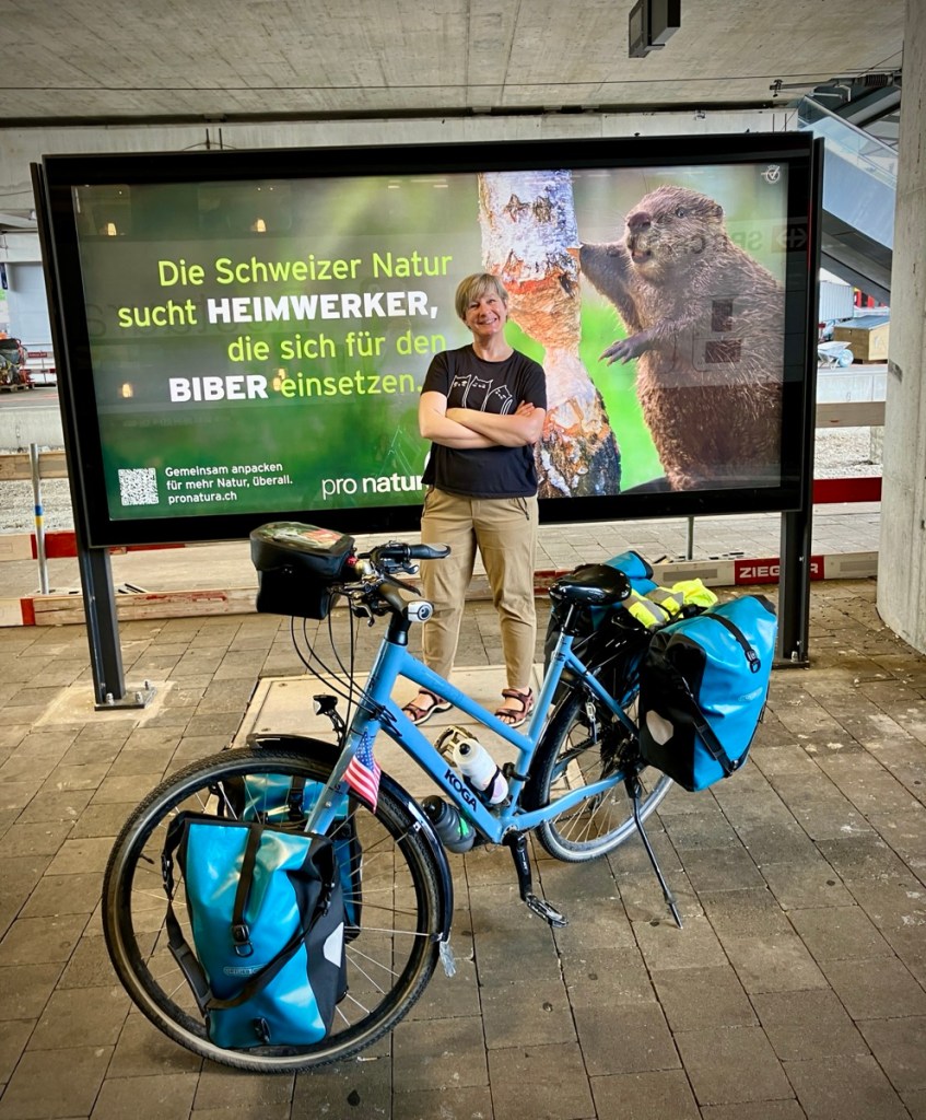 Train one of two to get us back to Geneva.Hooks to hang our bikes. You do need bike reservations and I think there were only four spots per train.Basel Switzerland train station.Riding to our hotel for a one night stay in Basel. The Rhine River.A border crossing, we stayed in French Basel. Saint-Louis actually. And yes the difference in bike infrastructure was dramatic once we crossed back into France. Oh, and hotels are about half the price of the Swiss side.Back to the Basel train station the next morning- not too early so we miss the crowded trains.A moment to celebrate the beavers, nature’s engineers. The scenery on the train to Geneva was stunning.Lac Léman and plenty of vineyards.The France/Belgium/Luxembourg/Germany/France/Switzerland/France portion of our final weeks of the trip.