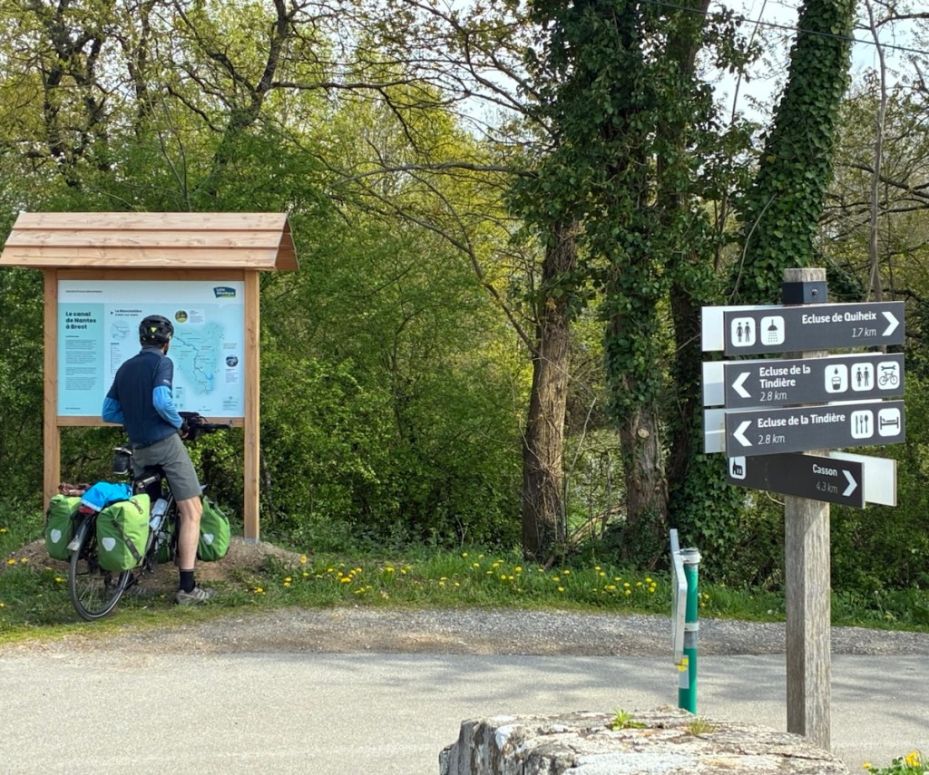 The Nantes Brest canal, conceived by Napoleon as a strategic inland connection of two important ports to avoid the British controlled ocean, is 390 kms long. That’s a good distance for a nice long game of Bike Touring Bingo.