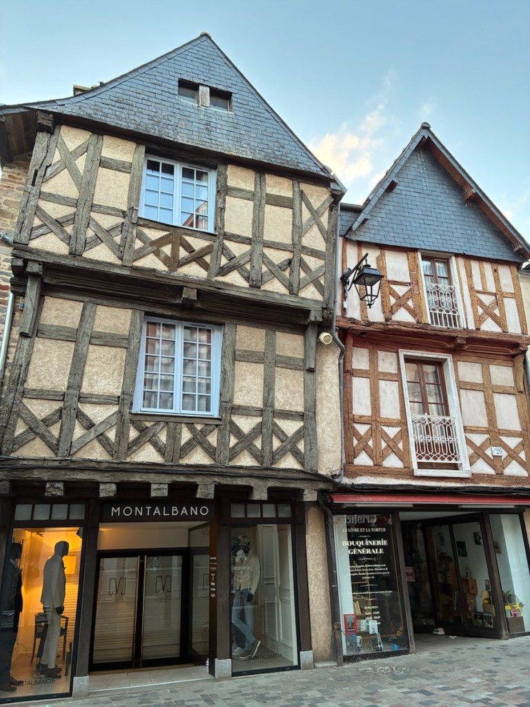 No photo of the hotel room in Redon. It was adequate. And small. We thought Redon would be a bit of a nothing town, and quite empty on Easter Sunday evening, but it turned out to have a lot of half timbered buildings and some fascinating historical plaques to help tourists understand the history of the buildings.