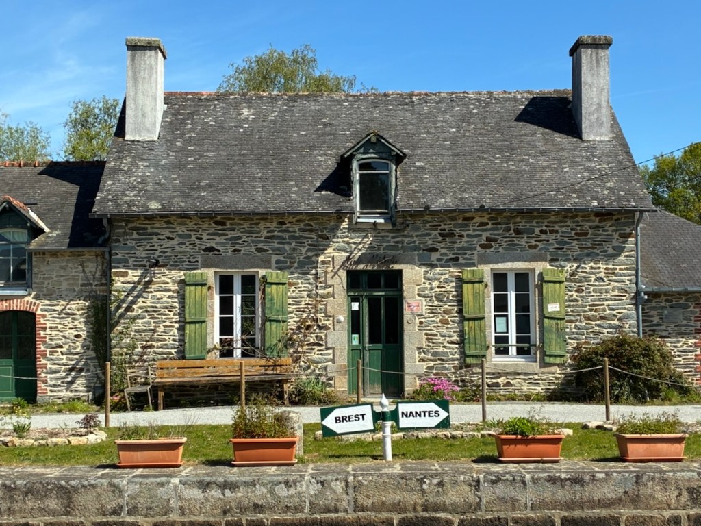 A sunny day with a tailwind on Nantes Brest canal. One of the many écluse buildings. Lock keeper houses.