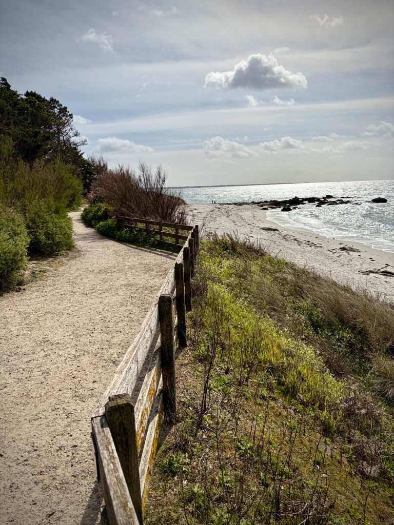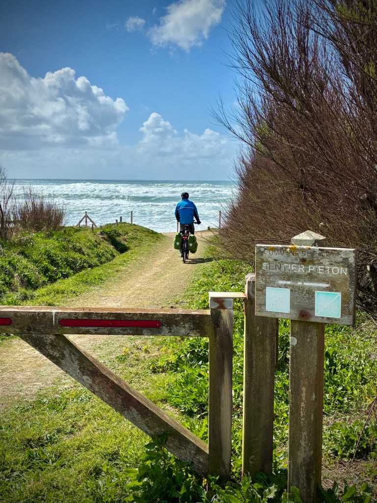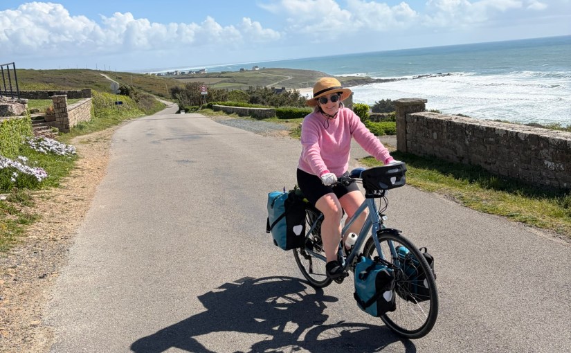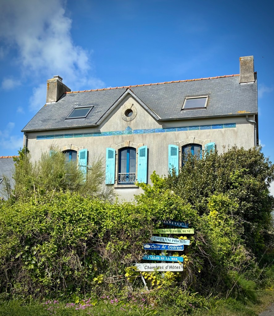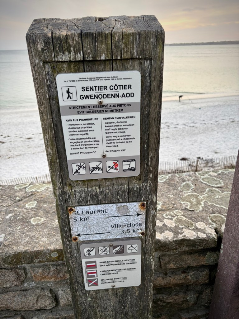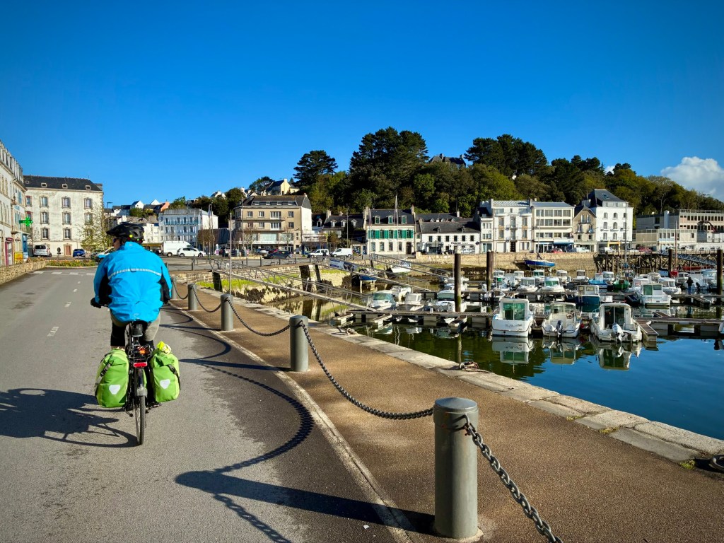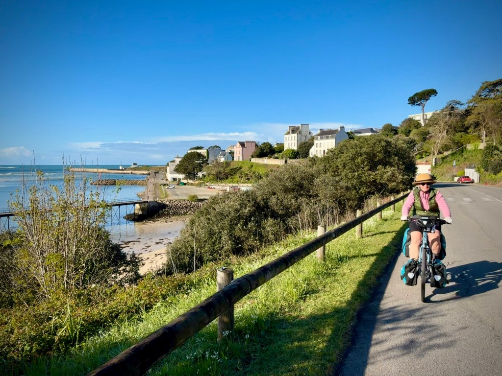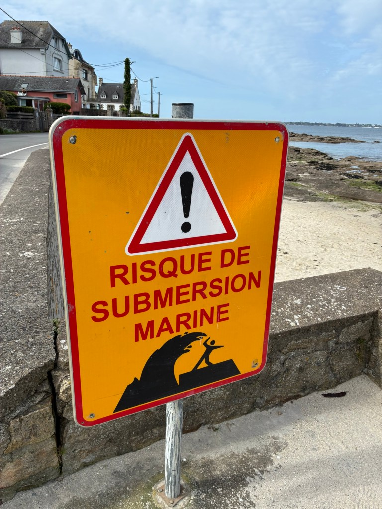 Just one of the risks of bike touring. Big wind, tides, and storms are part of life in Finistère, the westernmost department in France.Taking a walk along the bluff south of the hotel. Feeling a bit better after 24 hours…Leaving the lovely Les Sables Blanches Hotel where I spent the better part of 36 hours in bed with a lovely ocean view as my body recovered from a stomach bug. It could have been worse-:) The coast around Concarneau is part of the famous GR34 long distance walking route, which covers an incredible 2000km along the coast of Brittany. Much of our coastal bike route ( V45) covers the same zones, but not always as close to the sea.