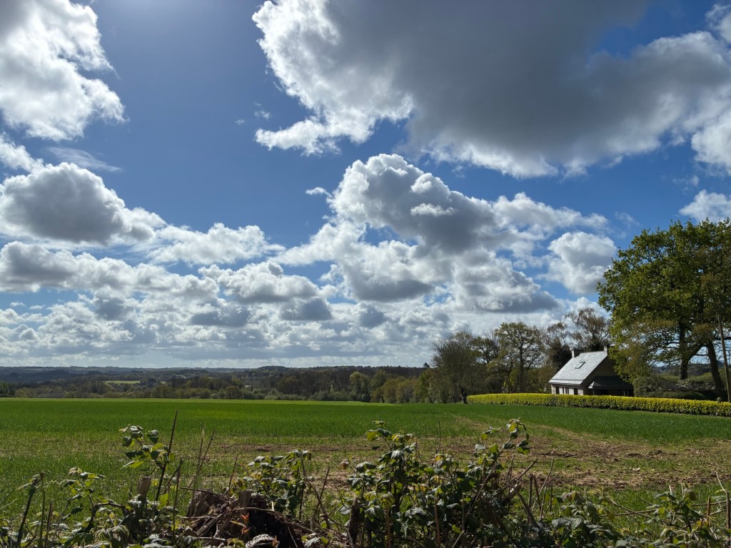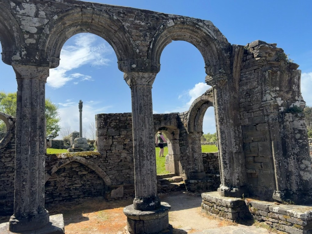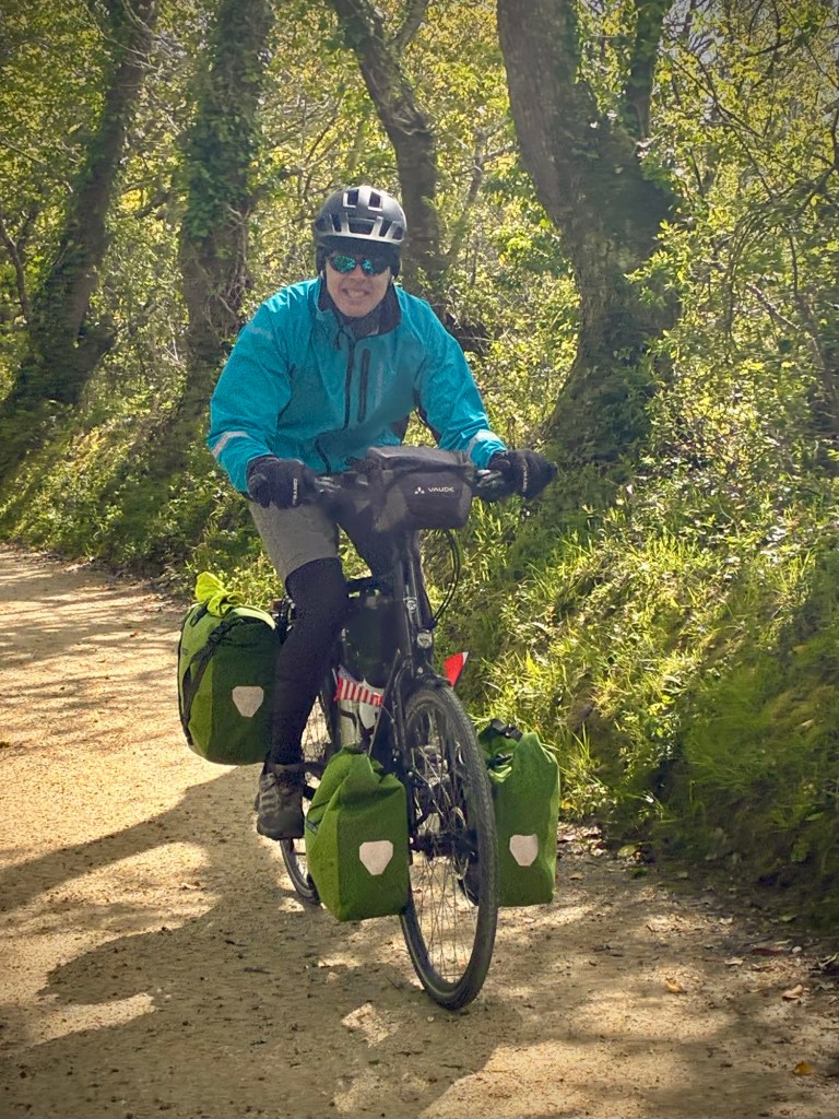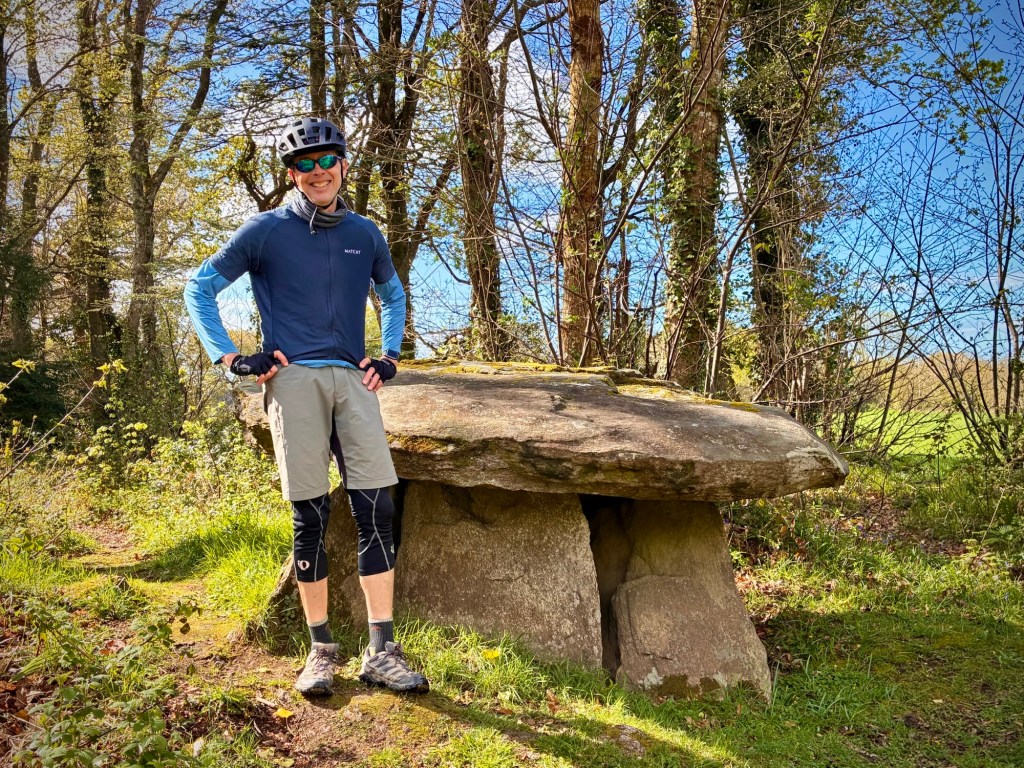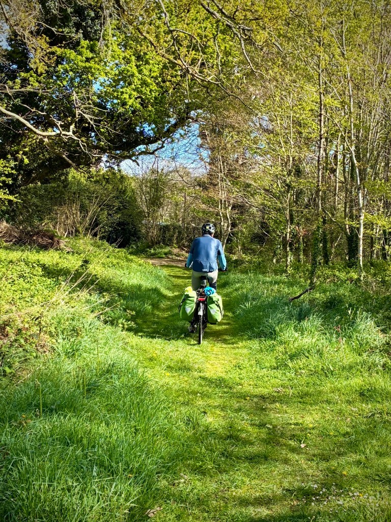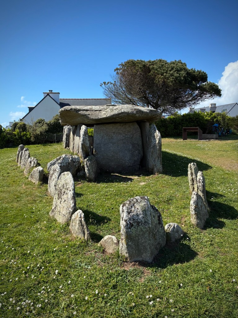 Heading up Le Goyen from Audierne. A spectacular morning. The tidal reach up the river is extensive.Finally heading upland towards Douarnenez.The architectural church style here is the “Pont Croix” and sure enough, you can walk all the way to Santiago de Compestela from here if you have a few months and good shoes.The beautiful Chapelle Notre-Dame-de-Kérinec, literally in the middle of nowhere. Why?Water was definitely a reason for this Chapels Location. Calvary cross and outdoor pulpit. Oh, and an access point to get up there….Apparently in the 1700s, the occasional Sunday Pardons (religious festivals) required an outdoor venue as crowds gathered from the countryside.Perhaps the spring was a draw here and motivation to build a church. It may also have been the drive to override the pagan Neolithic sites of the area.Speaking of Neolithic sites….Another cozy dolmen just down the road.And onto the Menhir with my spring camouflaged panniers!This is a big one.Big sky and sea.Oops, how’d this get here?