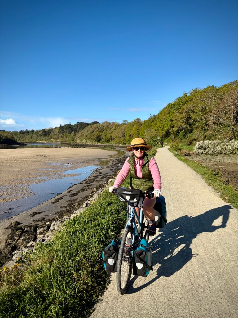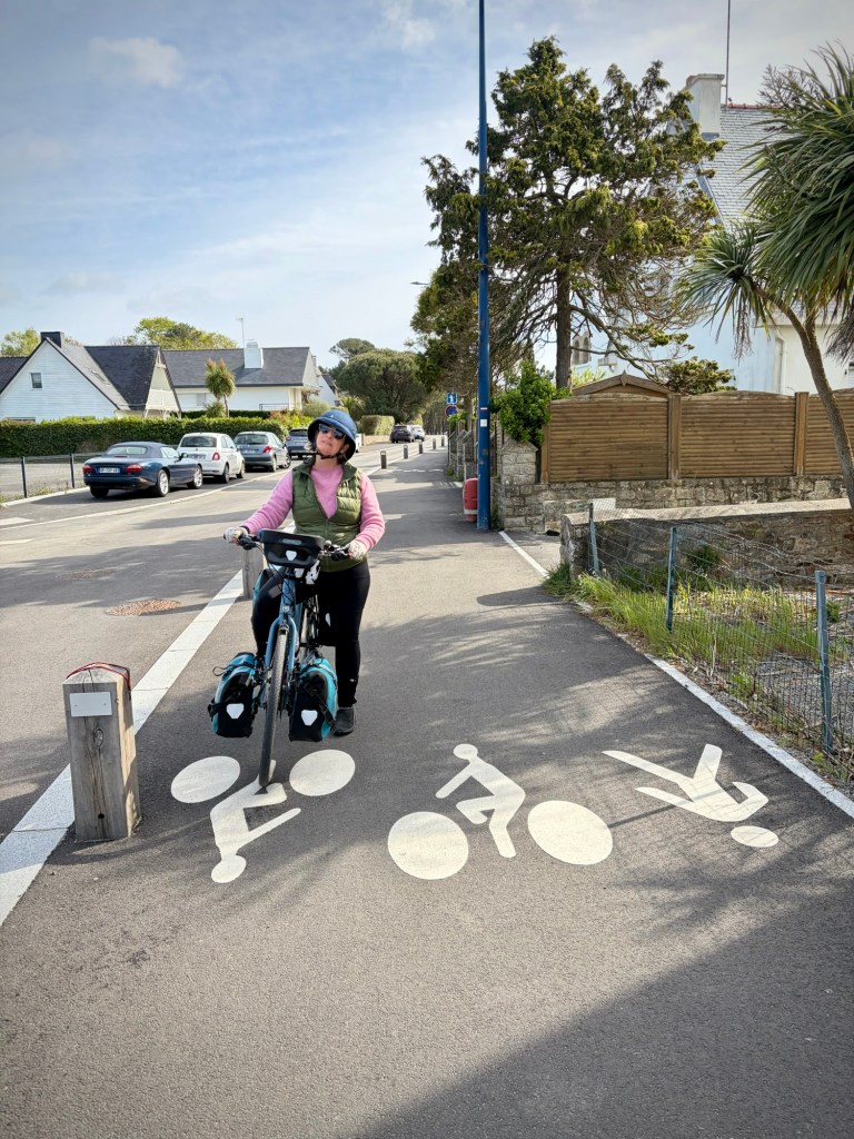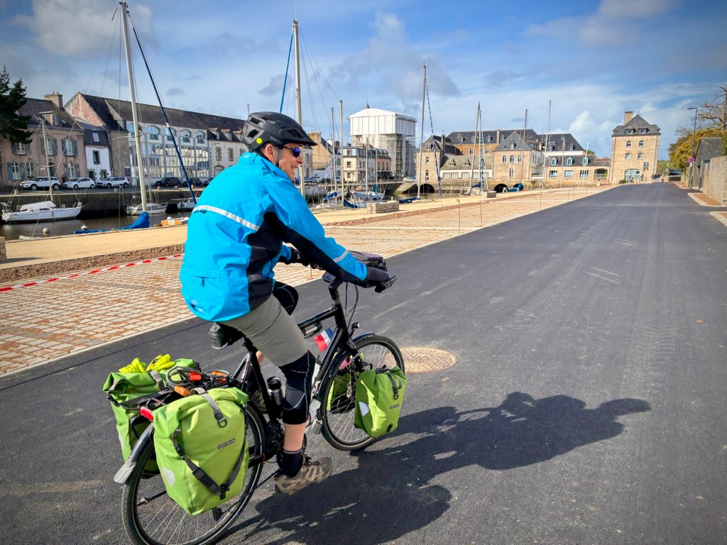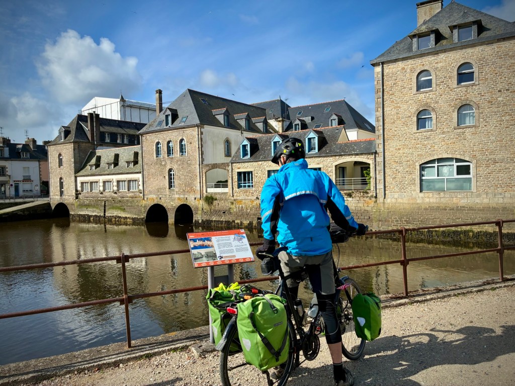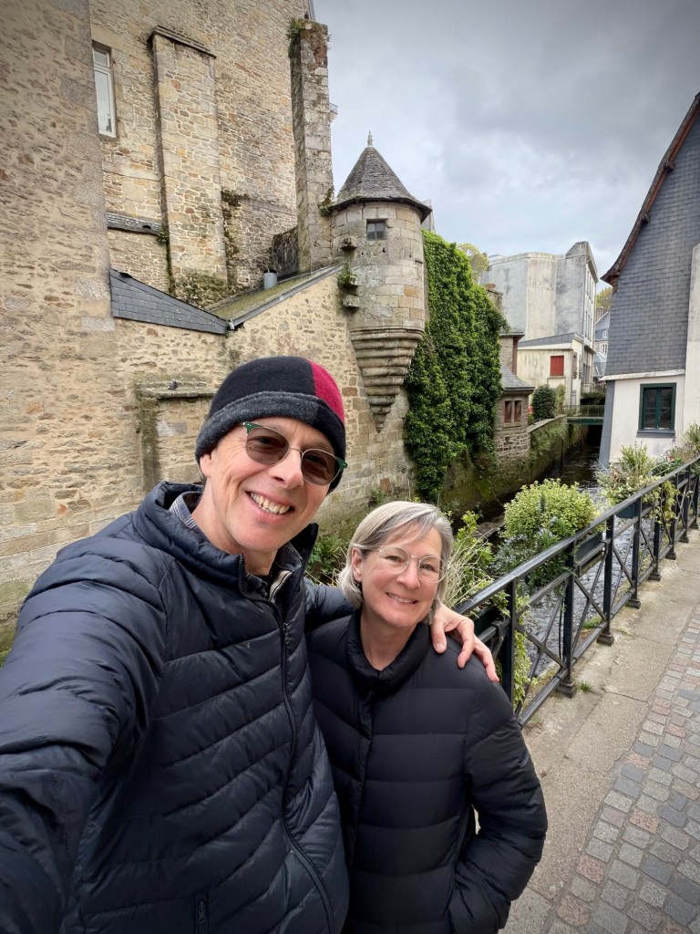 And after a brief afternoon meltdown (Cheryl’s turn) on a somewhat dull gravel rail trail, the happy bike travelers make it to charming Quimper.