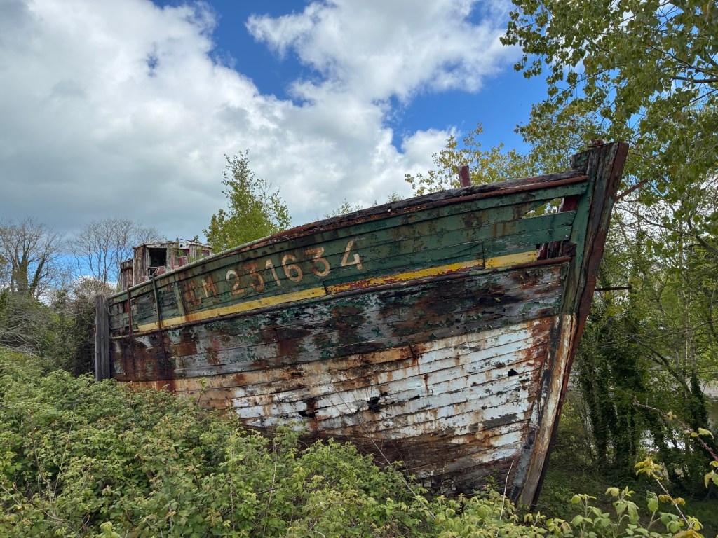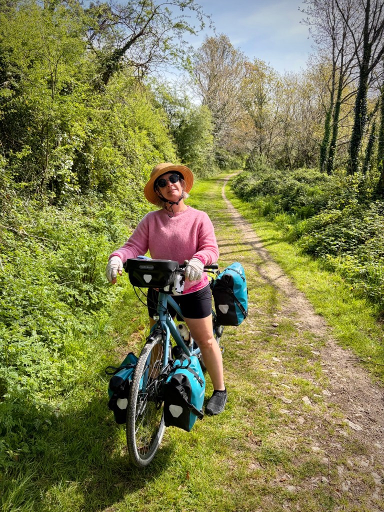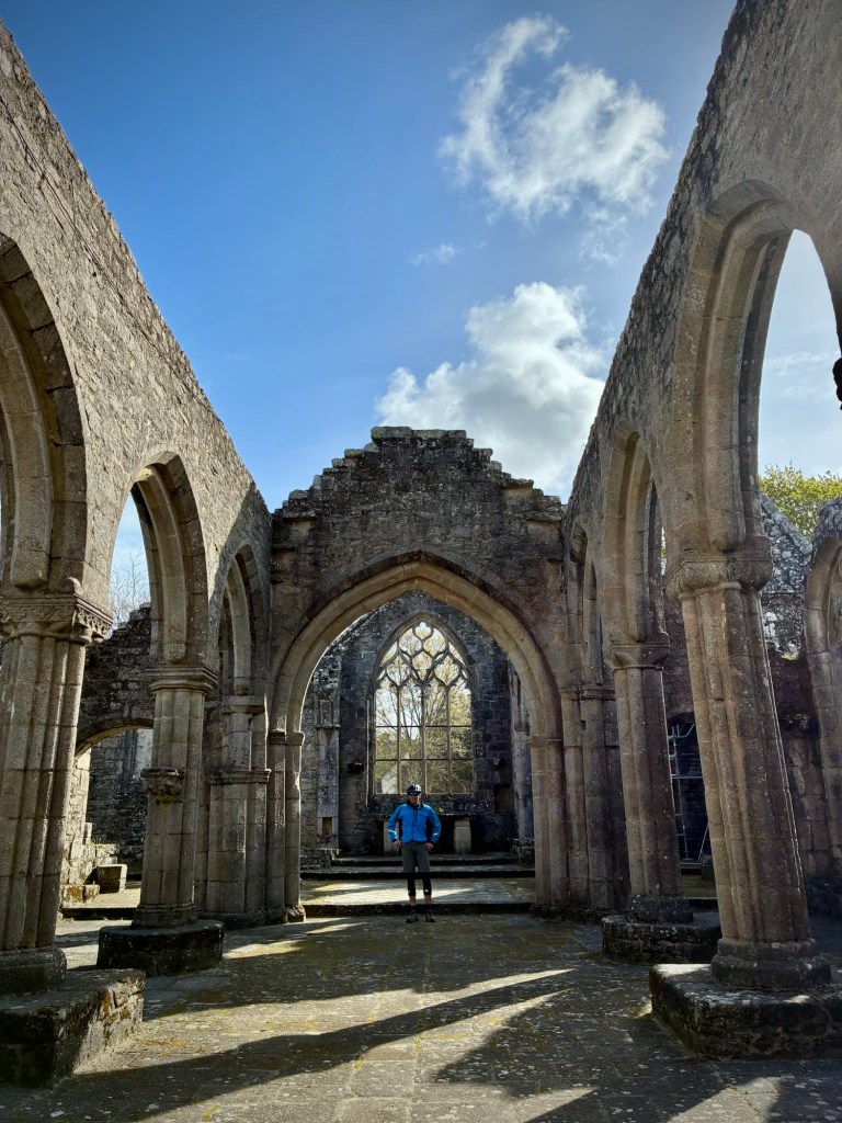 The smiles were authentic the next day as I paced myself better and felt stronger.The somewhat forgotten Pont L’Abbé, a once strategic control point for commerce and defense, including a stone bridge first built by a monk in the 14th century, complete with buildings atop.Chapel at Pont-l’Abbė.Our route included a gravel section on the old “Carrot Train” route, a small railway that brought goods to sale to and from Pont L’Abbé but was abandoned in 1935 with the rise of truck transport.A perfect lunch spot at the Church ruins along the Route Du Vent Solaire. The “Solar Wind Route” is named after the work of Pierre Jakez Hélias, a writer born in the Pays Bigouden region, the Solar Wind Route is like the wind: it often changes direction. Lots of 15th century ruins to explore all to ourselves
