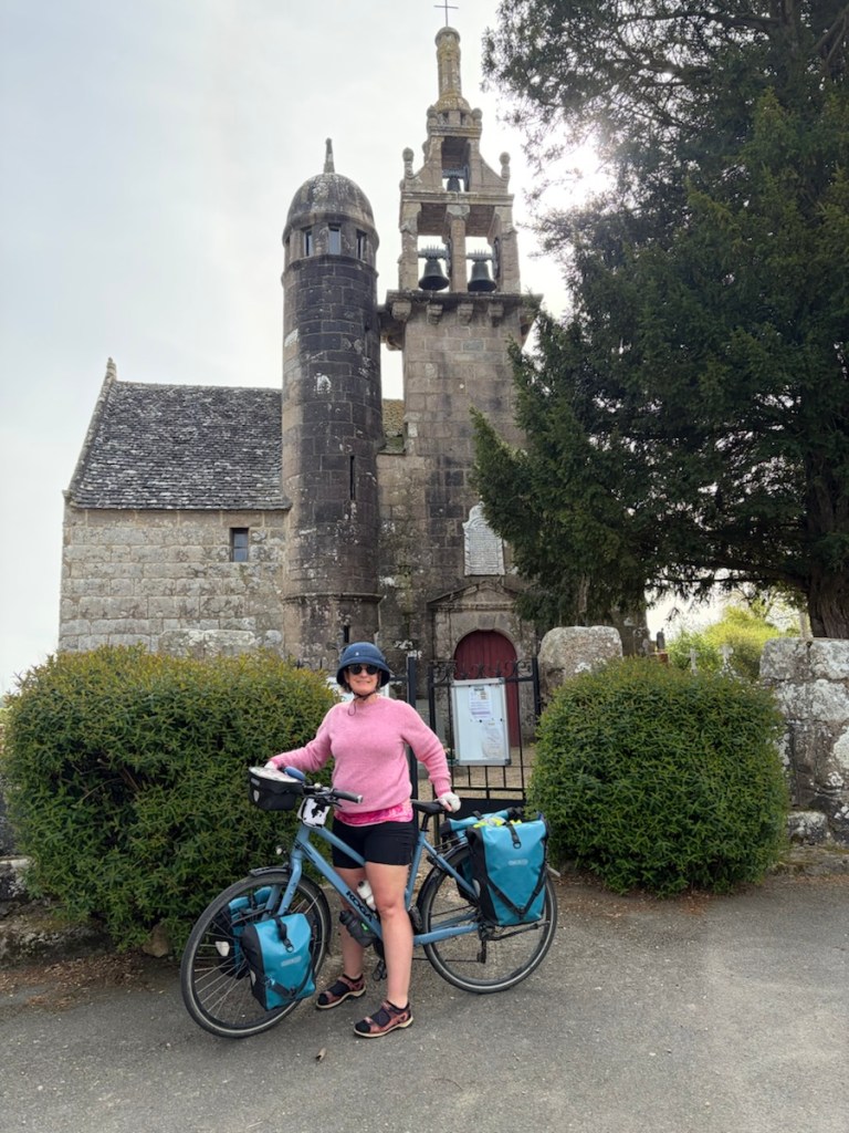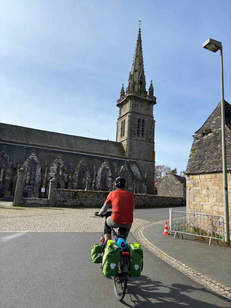 Église Saint-Théodore in Tréduder. I had to change my helmet cover due to the wind.