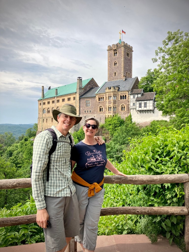 The intrepid travelers carry on…outside Wartburg Castle, Eisenach.