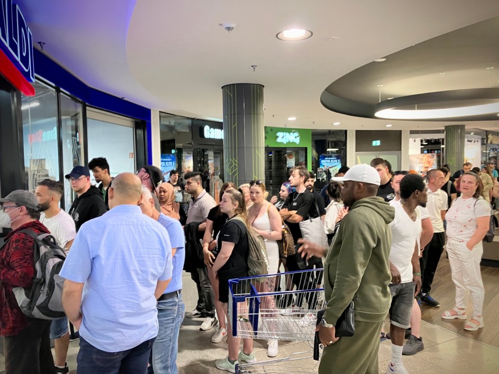 A near riot prior to 6pm Aldi closing. It was the only open supermarket in central Dresden over Whit Monday holiday weekend. There may not be convenience stores anywhere, but there are so many bakeries!