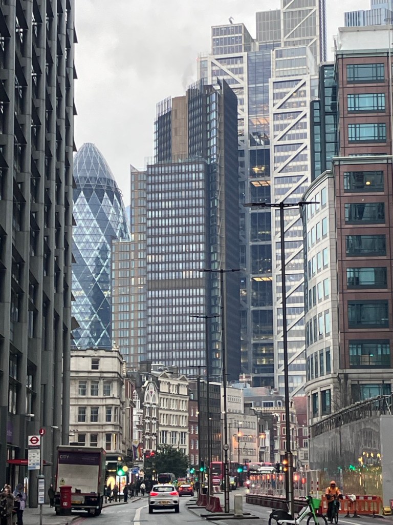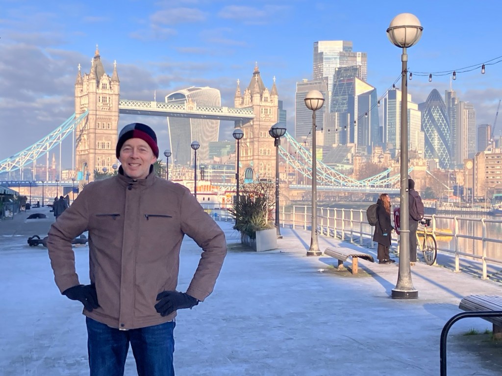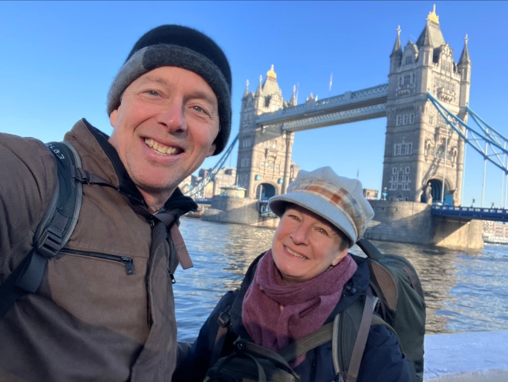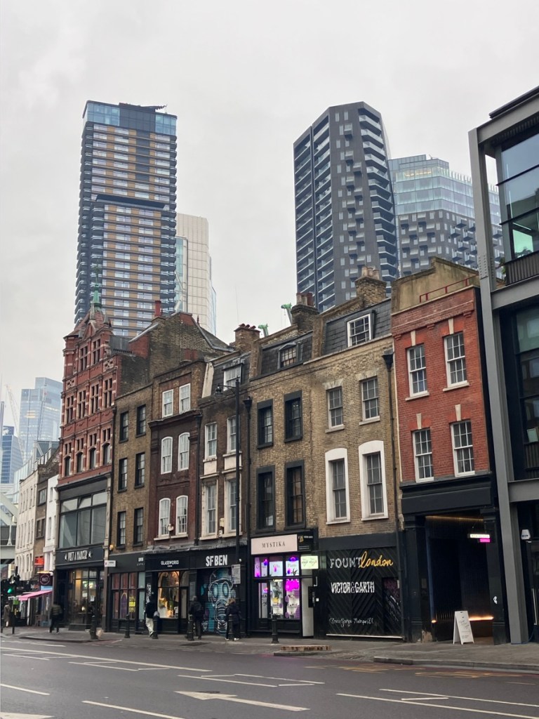 Charing Cross Station, London. On our way to Hastings. Nice digital departure board.British seaside towns. Love them. They share similarities but are all so different.The covered promenade with the Hastings pier in the background.What does this British seaside town have that no other one does? Our friends Joe and Justina!We had a great walking tour of Hastings. A lovely town well worth visiting. Up on the East Hill.The net shops on the harbor. Where fisherfolk store their equipment and hang their nets to dry. From above the tall narrow black buildings look like toys or monopoly houses.And no day is complete without a pub stop, this time at The Clown.And after an easy train ride, back in London for a few days.The modern skyline in the glorious winter sunshine.I love the juxtaposition of the Tower of London and the Shard. It was a super cold and still morning, the reflection of the bridge in the river caught our attention.Frost on the river walk, and slightly hazy air made the view soft focus and golden.We were staying right near Spitalfields and the view of City of London with the old buildings in the foreground was captivating.Modern buildings looming over old buildings.Museum of the Home, located in a row of old almshouses. Loved the Rooms Through Time exhibit, the evolution of London dwellings from 1630 to present. Dinner date with young friends who recently moved to London.