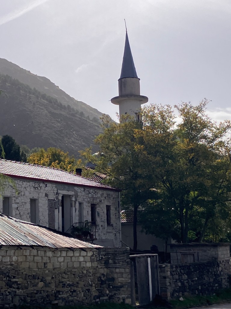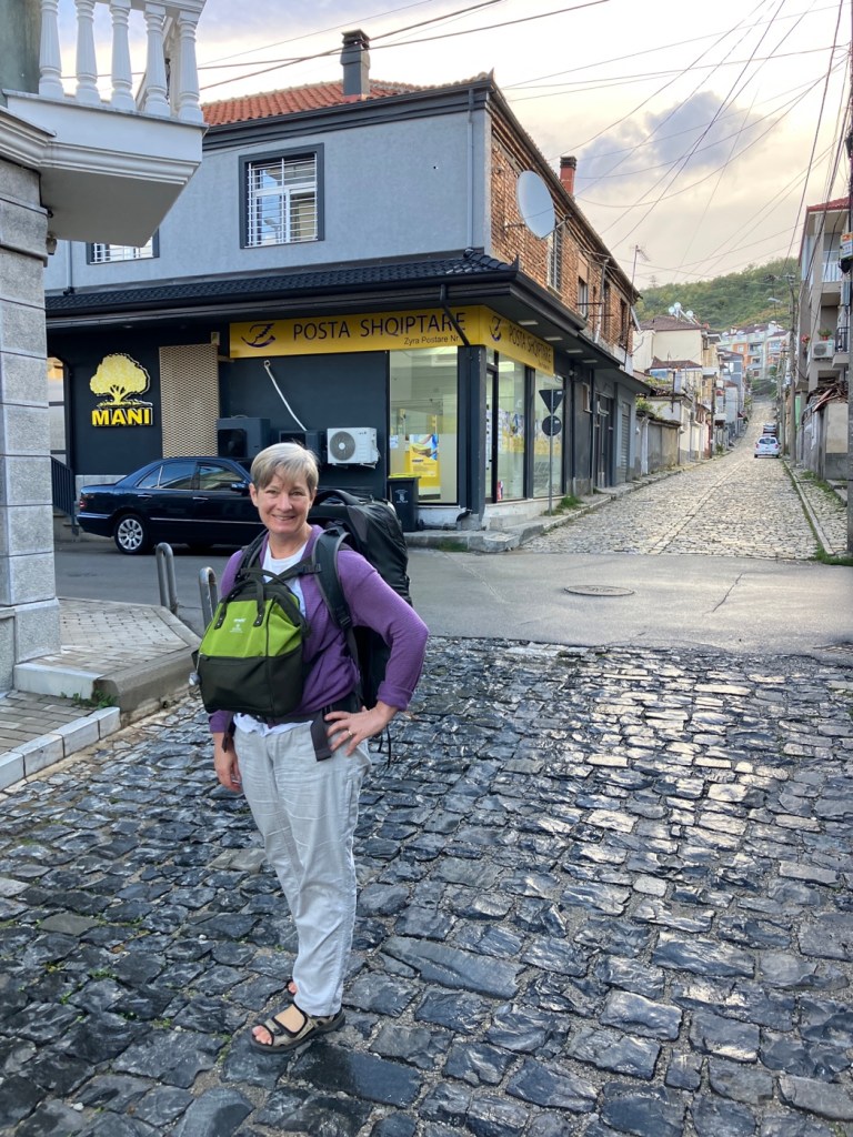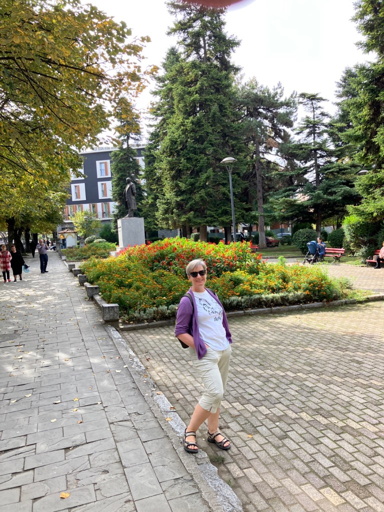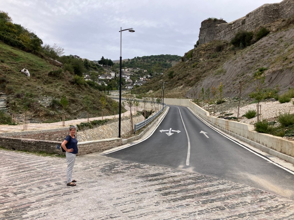 Elbasan itself has a nice Main Street lined with buzzy cafes, wide sidewalks, and ending at a large car free promenade space in front of its historic castle walls. It’s a busy market city too and has lots of young people and a university. The castle is unique as it’s on the flats of a valley, and is integrated into the fabric of the city with a few cafes and lodging options, mixed with regular city residents. It’s not the most picturesque castle or old town, and there are not really any other major sities of interest in Elbasan, but it does have a pleasant park, and we enjoyed our 24 hours there. People were friendly and genuinely pleased to see us tourists, and we were happy to see them. We did spot a cycle tourist from Germany at a cafe, but it turns out he was going to camp in the nice river valley west of town, so it did seem to be just Cheryl and I as far as tourists in this small city of 140,000. Our reward was really friendly locals at lunch and dinner, with a clear excitement to have Americans visiting. Albanians really are nice once you get through their guarded facade. The old adage that the fewer tourists a place gets, the more friendly and genuine the engagements resonated here.