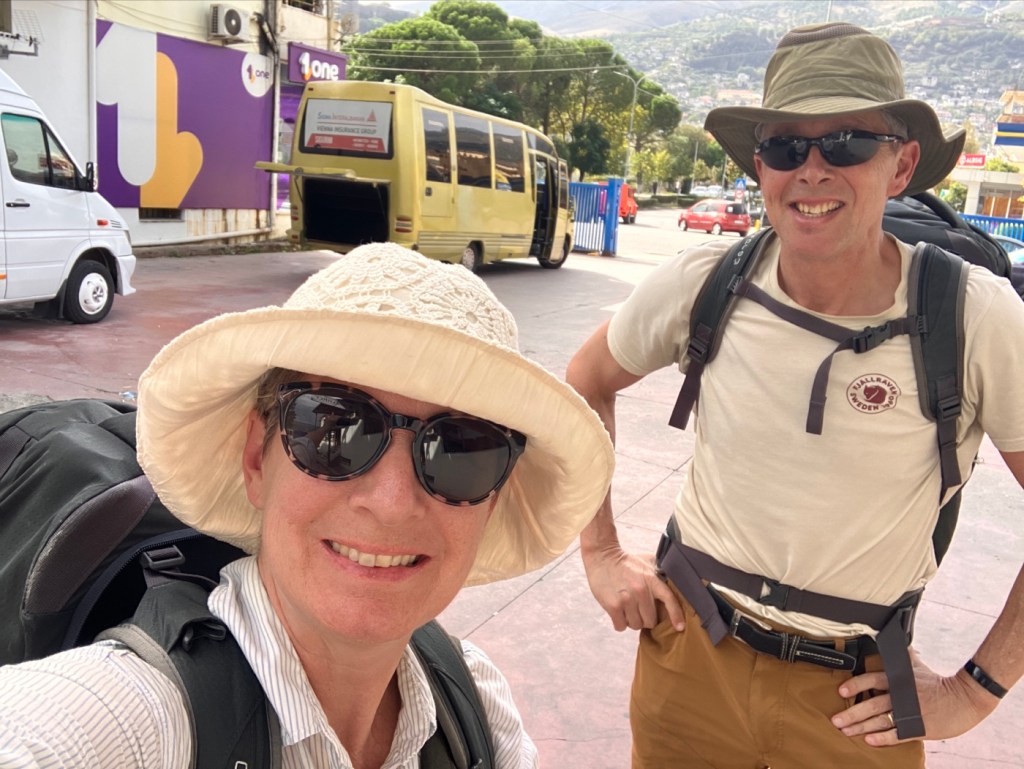 The bus was a complete mix of passengers from other Balkan countries and further afield, so the border crossing between North Macedonia and Albania was slow. We all handed our passports to a young (unmarked) guy who walked down the aisle of the bus and then disappeared. He finally returned 45 minutes later and then tried to make his way down the aisle with 50 passports. He tried to call out many challenging names as the bus swerved and swayed in sweeping corners descending over a thousand feet from the pass that separates North Macedonia from Albania. As he balanced all the passports in two hands, a particularly sharp corner sent dozens of them scattered across the floor of the bus. Oh great. And then it happened again a few minutes later. It was simultaneously comical and concerning (our passports!), but we mostly felt for the guy as we figured it must be his first day on passport duty.