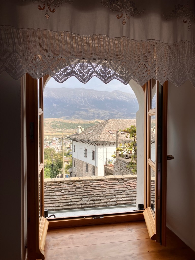 Berat is in located in an atmospheric location the Osum River valley and is a fascinating place to explore with rapidly developing tourism. It’s been a tourist star for a long time, but civic improvements and more restorations of crumbling buildings and ancient sites is making it even more appealing. After our night in the friendly (but young) Maya Hostel, we found a nice apartment in the center of town to settle into for three days. A number of apartments in older (non historic) buildings have surprisingly nice interiors in a rough shell and exterior. I had to block my inner civil engineer concerns as lightly reinforced concrete buildings with clay blocks are the standard construction style. Most would probably ok in a smaller earthquakes but would be no match for a big one. A moderate earthquake in Northern Albania in 2019 did kill and injure a lot of people, so hopefully more investment will bring more modern buildings and retrofits.