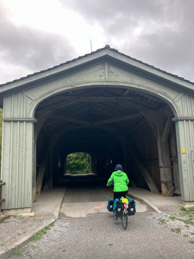 The next day was another relentlessly rainy day with few places to stop and escape the weather. This is definitely a challenge on many long distance cycle routes; there may be lots of nice benches and even tables, but there are rarely covered rest areas, so bridge underpasses or farmers barn overhangs become your best bets.