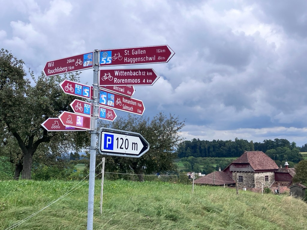 After a good nights sleep, which was very welcome as the jet lag got us bad this time, we headed out towards Wil, Switzerland. Riding out of Zurich was like riding out of any city, getting through big box store areas, crossing highways and motorways, through large roundabouts, and finally seeing the wide open countryside. Well, almost any city. In the Netherlands of course, you can easily ride anywhere – including into and out of big cities. We still reminisce about our ride through Utrecht a few years back and how absolutely easy it was.