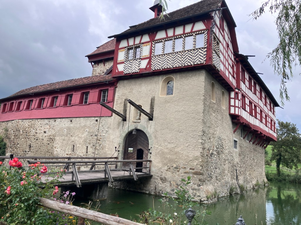 We’d been lucking out with the weather, grey skies and threatening clouds and we got to Wil before the rain and hail front moved through. The hail did catch us out without an umbrella and forced a dinner decision on us – the close burger place versus the Thai place which would have meant arriving drenched. And did we walk out of our hotel right past a big bucket of umbrellas to borrow? Yes. Lesson learned.